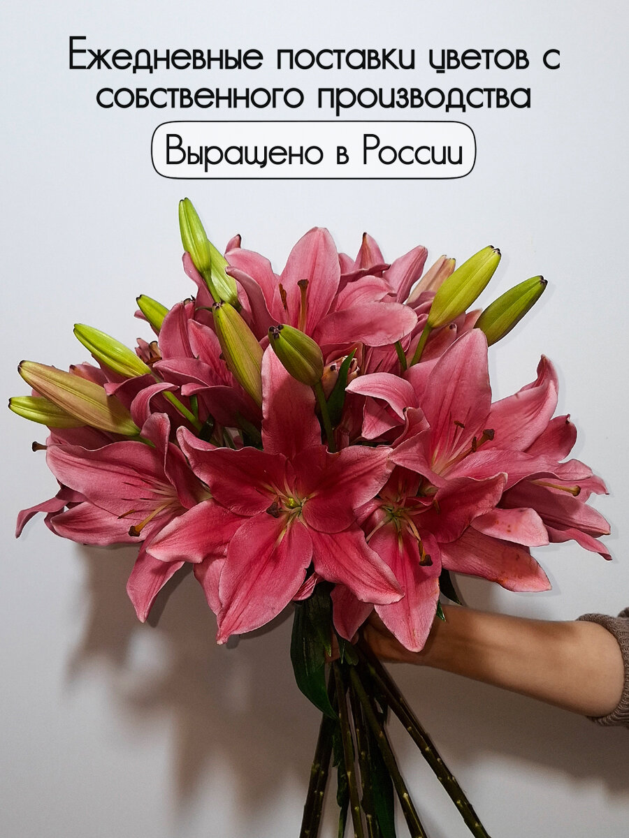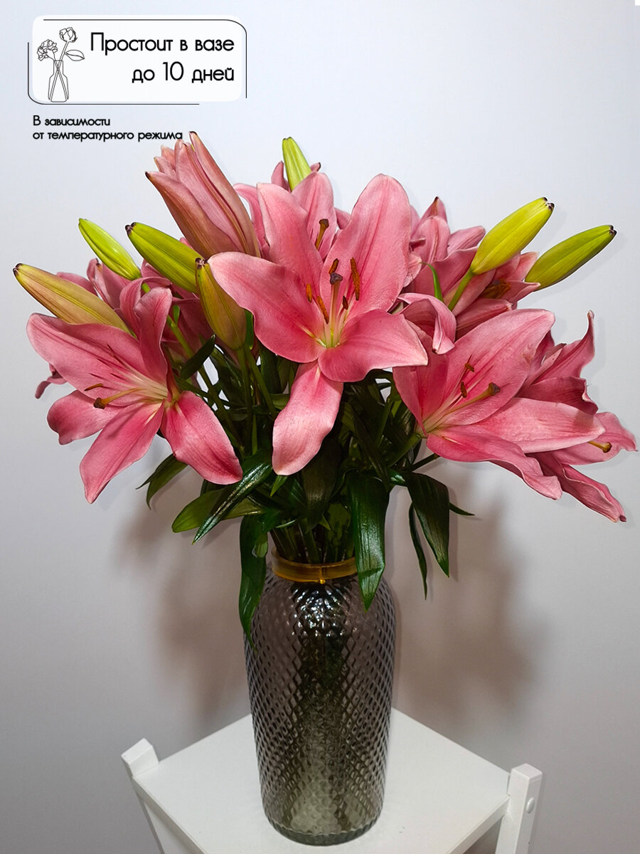 10 цен на Монобукет крупных розовых лилий, 9 стеблей, высота 60 см. Florentika