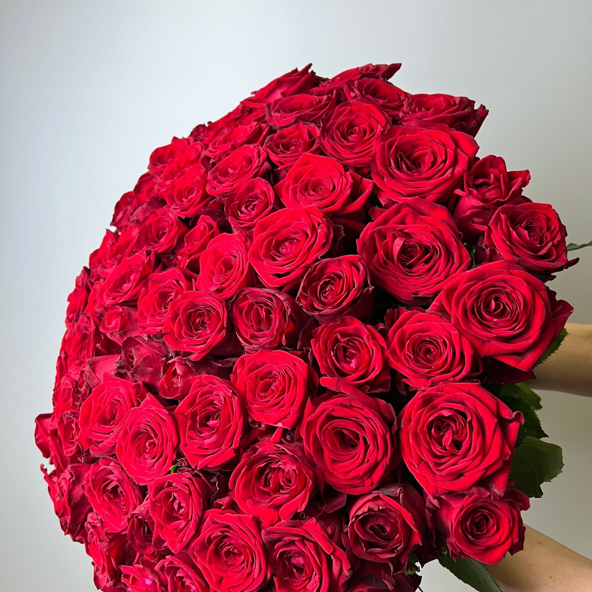 10 цен на Живые цветы букет красных роз 81 шт. 50 см, "Королевская страсть", сорт - Ред Наоми