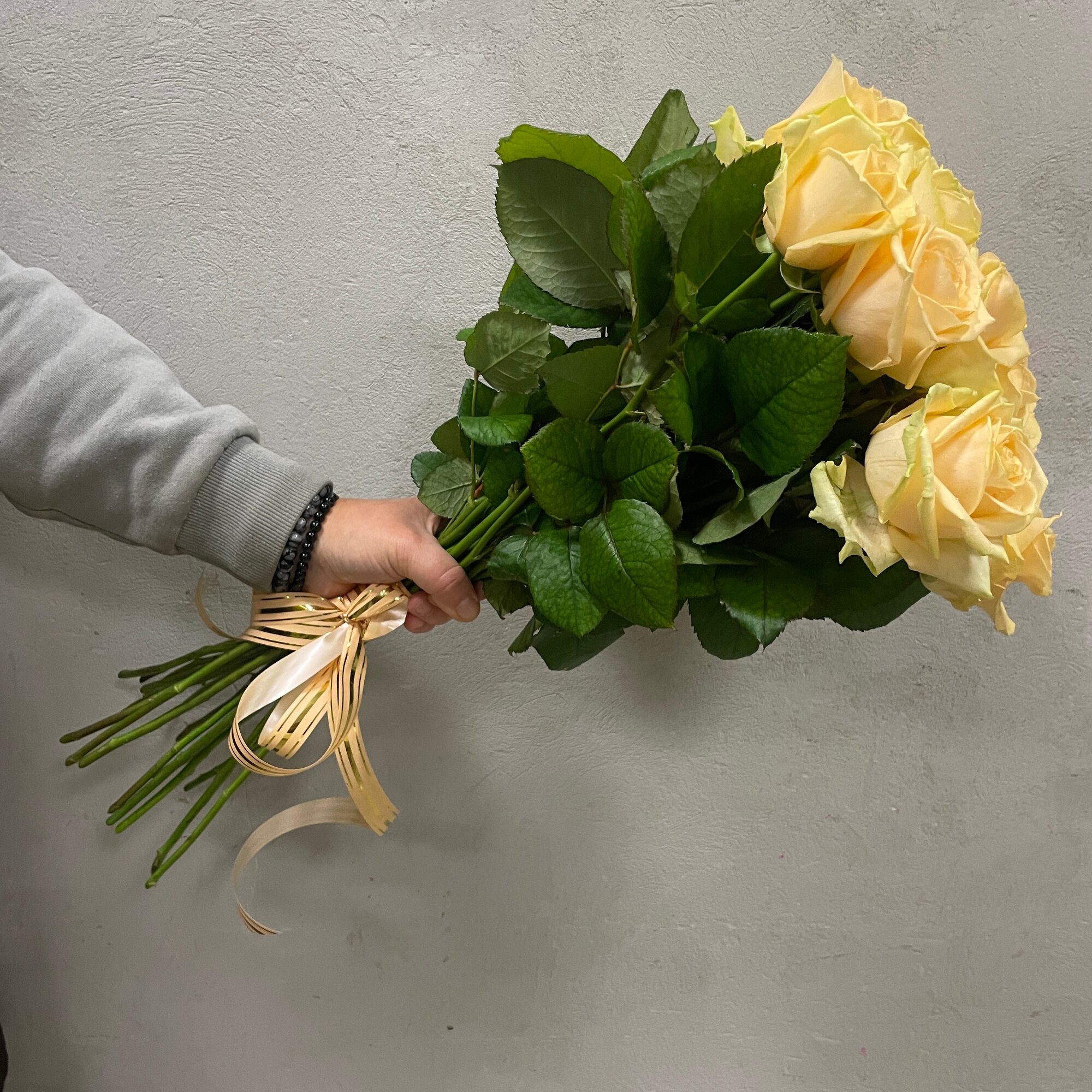 10 цен на Живые цветы букет роз 19 шт. 60 см. кремовый, сорт "Пич Аваланж"