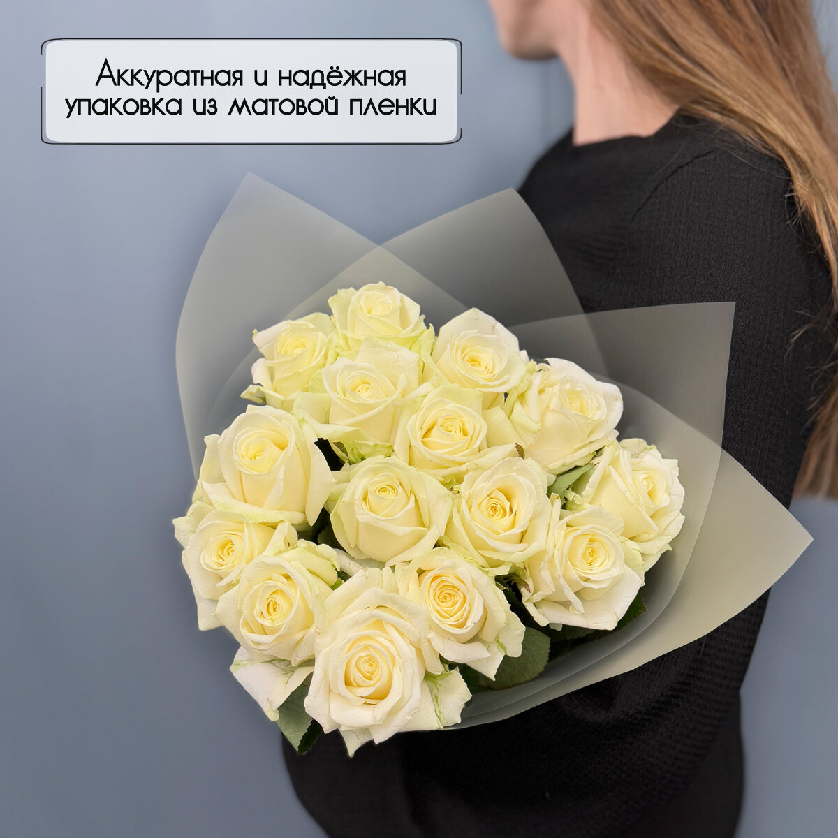 Букет нежных белых роз Avalanche, 15 штук, высота 40 см. Florentika 1 967 ₽
