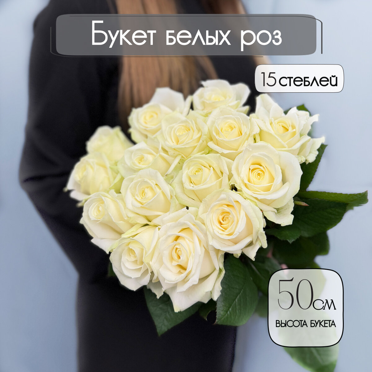 10 цен на Букет белых роз Avalanche, 15 штук, высота 50 см. Florentika