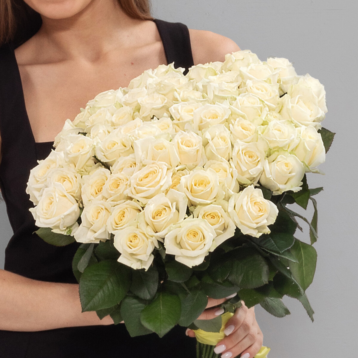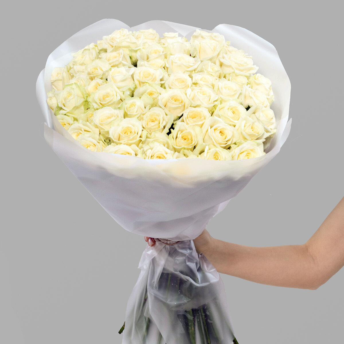 Букет белых роз Avalanche, 51 штука, высота 50 см. Florentika 8 281 ₽