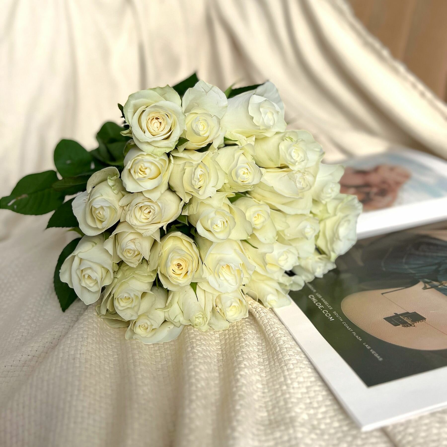 Характиристики этого товара не найдены!Отзывы на Букет живых цветов из Белых роз 25 шт. высота 42 см. Luxus Flowers
