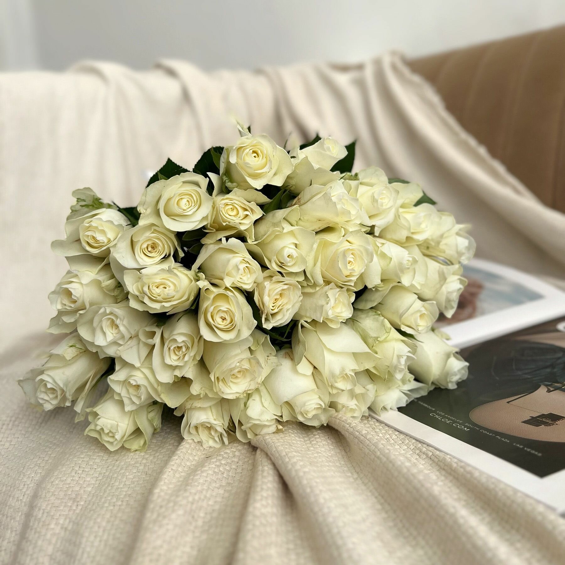 Характиристики этого товара не найдены!Отзывы на Букет живых цветов из Белых роз 35 шт. высота 42 см. Luxus Flowers