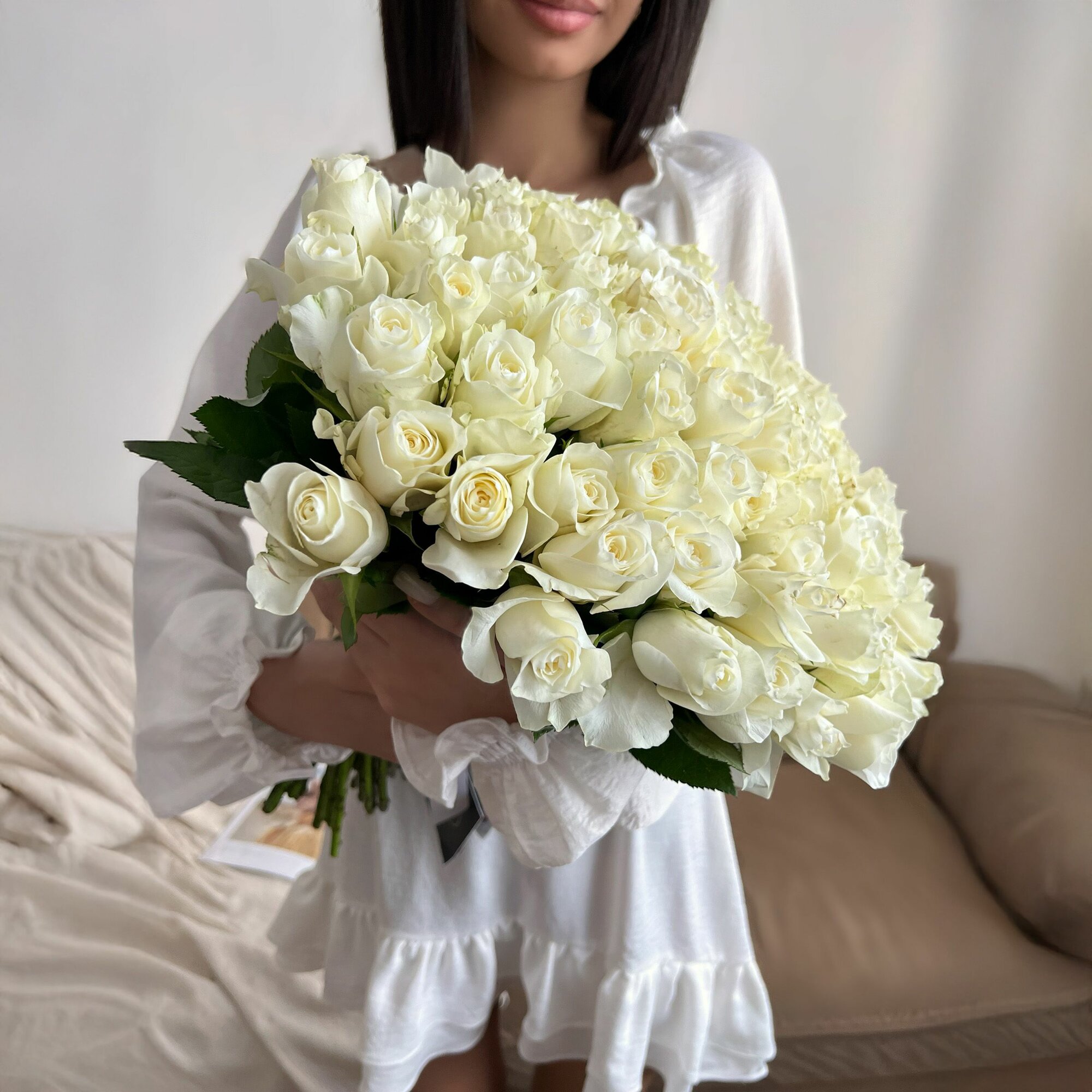 10 цен на Букет живых цветов из Белых роз 101 шт. высота 42 см. Luxus Flowers