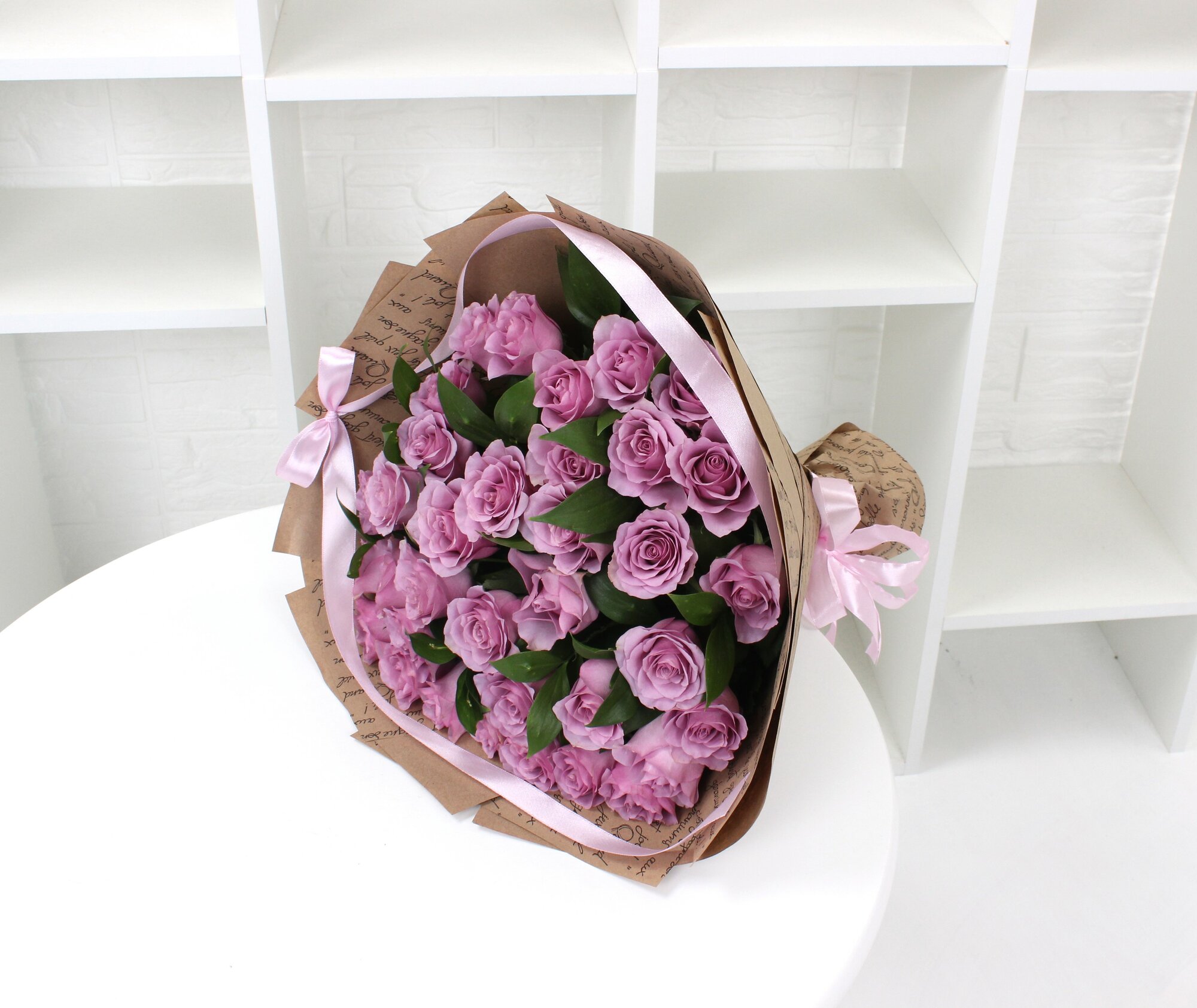 35 сиреневых роз 40см с зеленью информация: