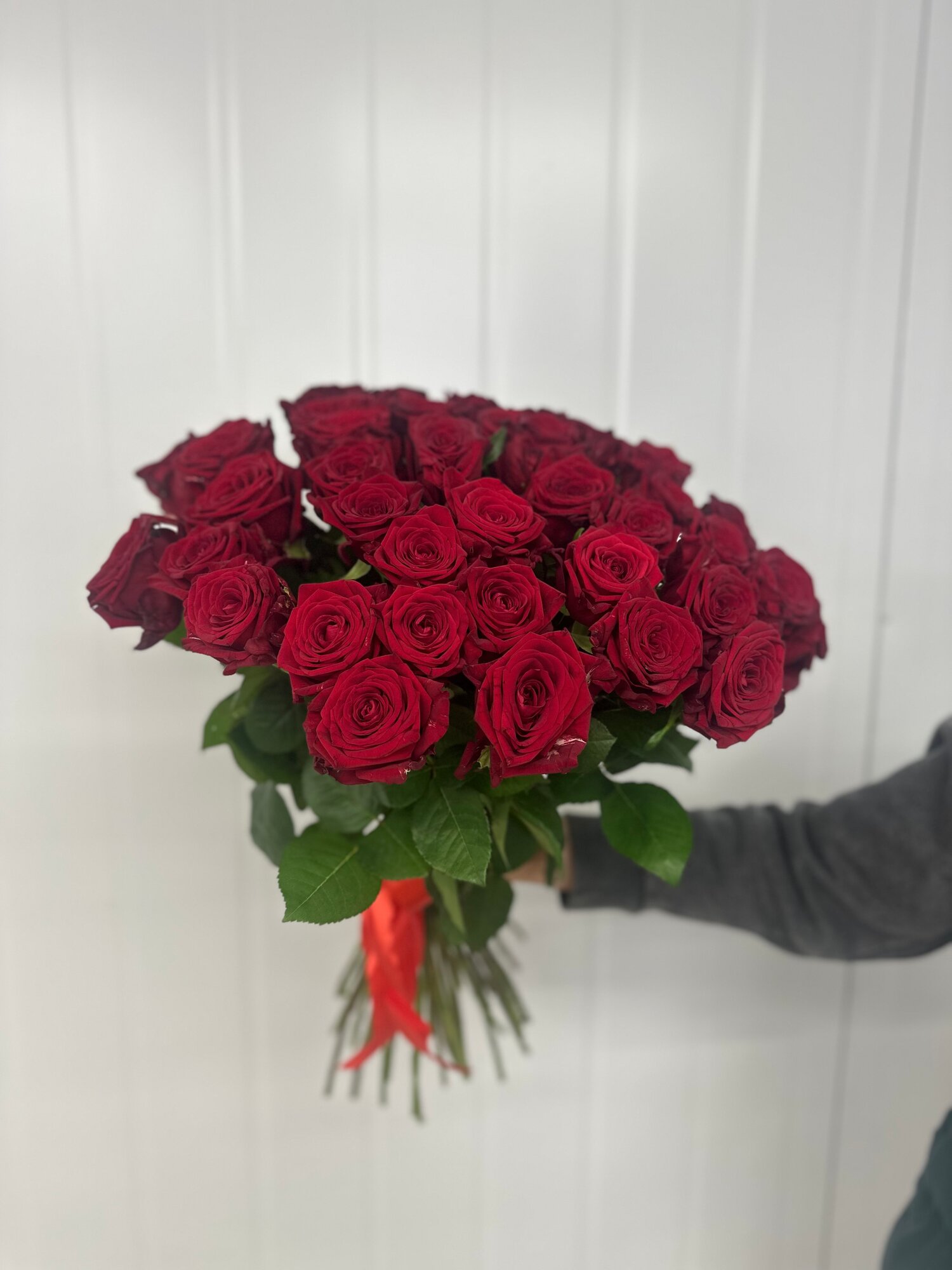 Живые цветы букет из красных роз , сорт "Ред Наоми", 35 шт, 60 см, под ленту 4 400 ₽