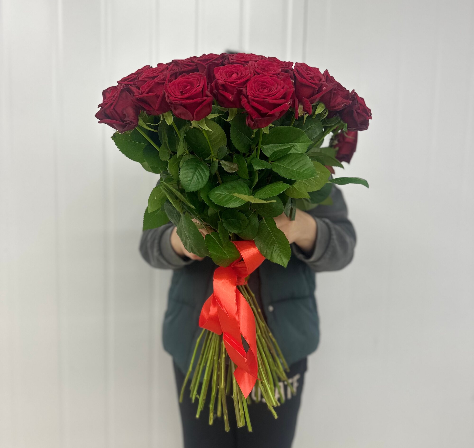 Живые цветы букет из красных роз, сорт "Ред Наоми", 25 шт, высота 60 см. 3 300 ₽