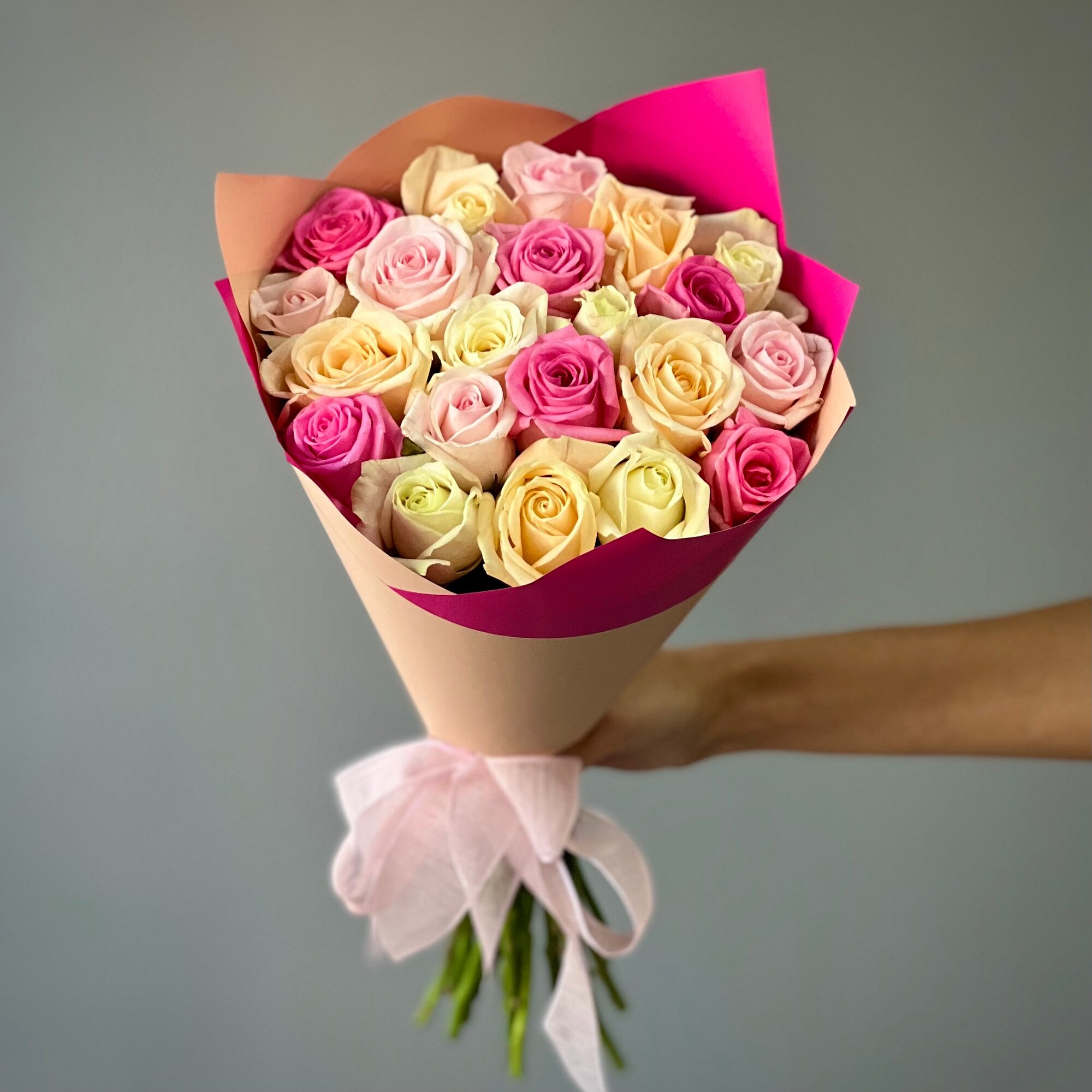 10 цен на Букет из 21 нежной розы 50 см в стильной упаковке. «365 Поводов» - живые цветы с доставкой
