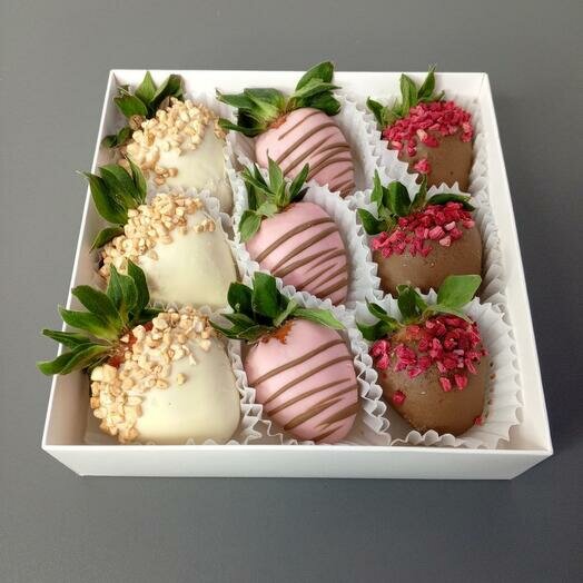 Отзывы на Композиция RefreshBerry "Клубника в Шоколаде", в коробке, в белом, розовом и молочном шоколаде 9-12 ягод