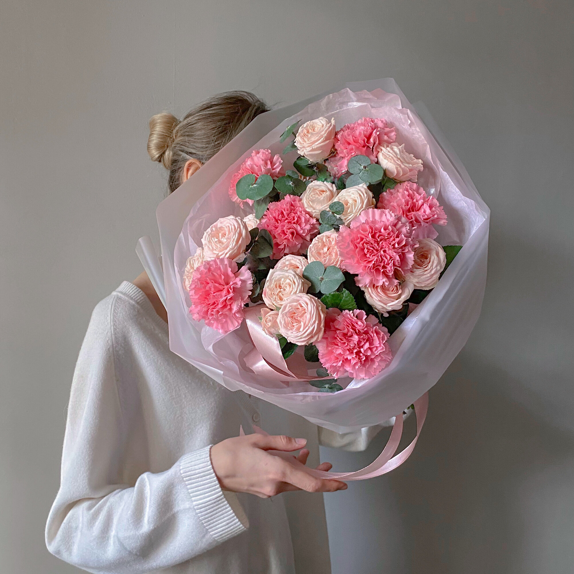 10 цен на Нежный букет с пионовидными розами в авторской упаковке. Размер М