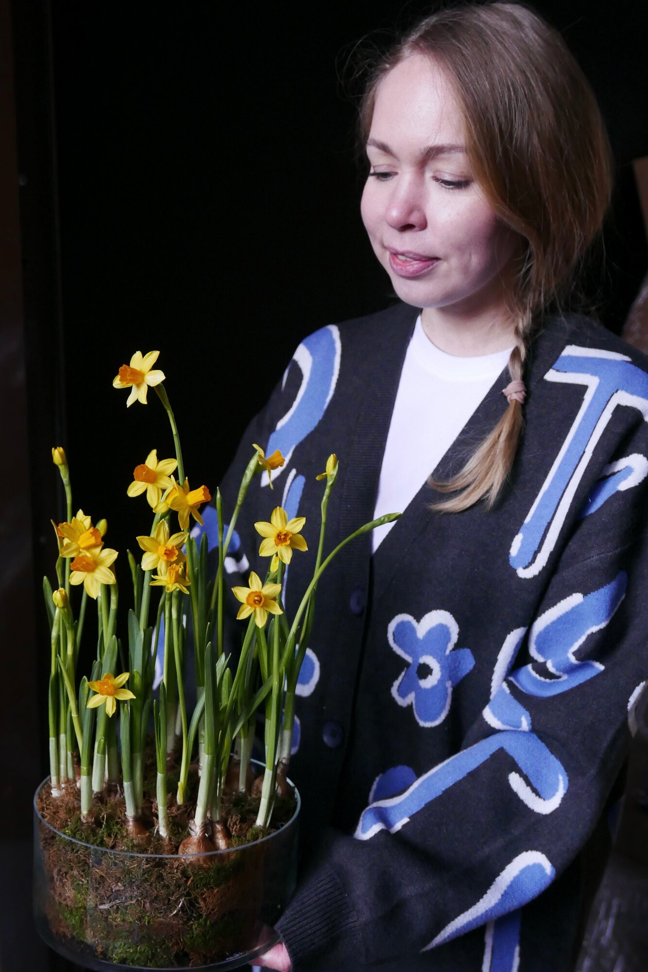 10 цен на Композиция в вазе klumba.moscow "Нарциссы", луковичные, в стеклянной вазе