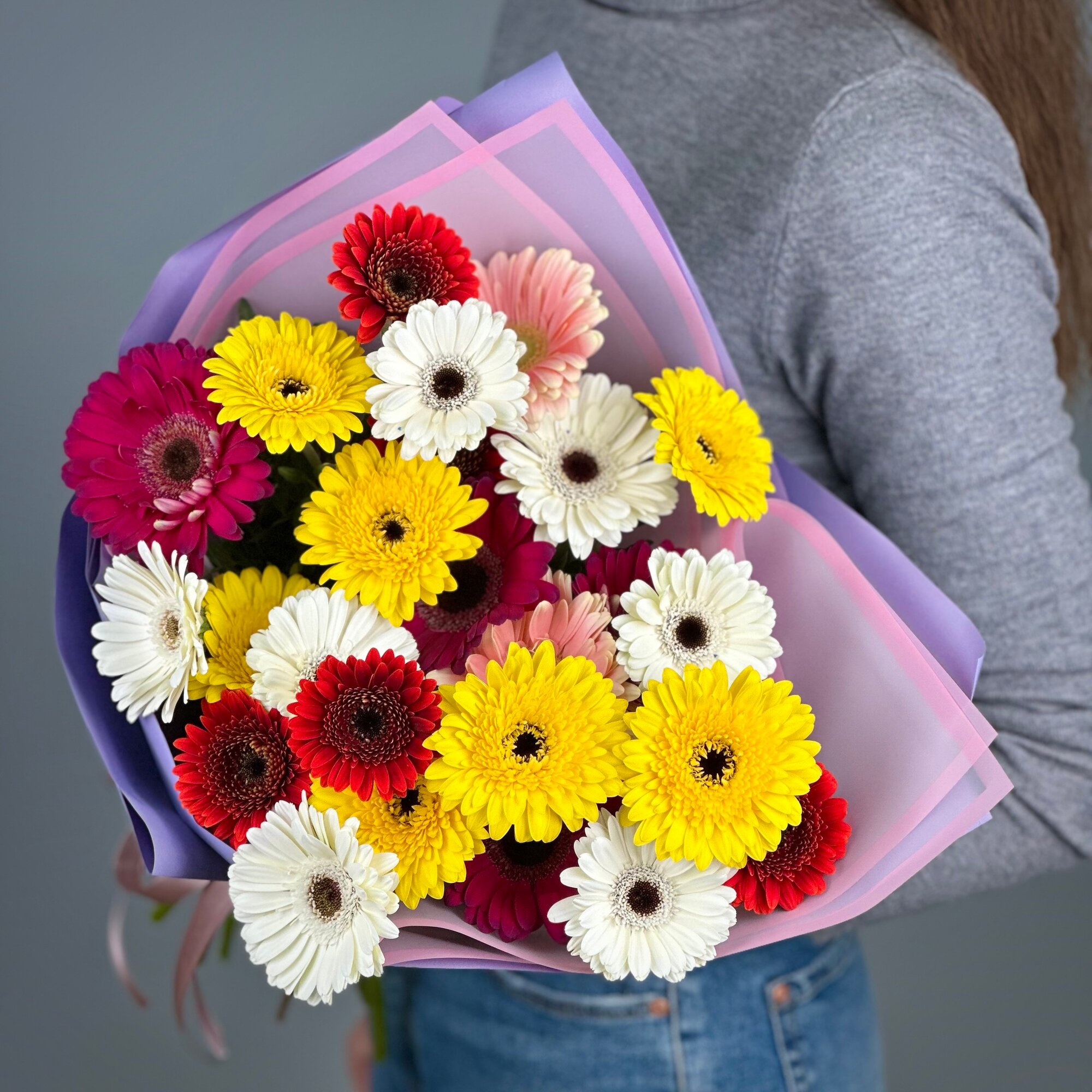 10 цен на Букет из 21 гербер микс в стильной упаковке. «365 Поводов» - живые цветы с доставкой