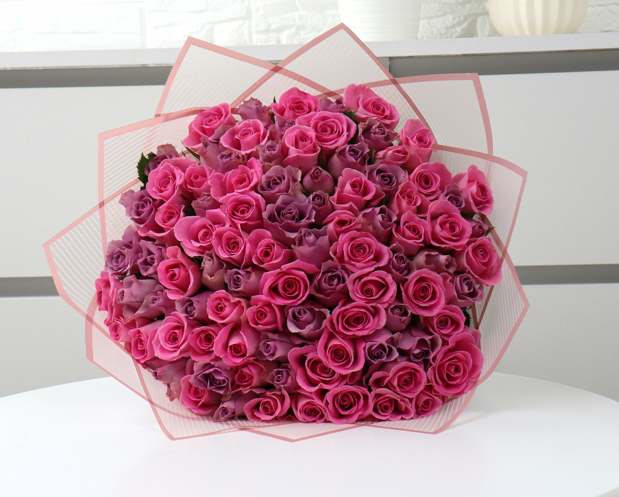 10 цен на 101 роза из розового и сиреневого цвета 40см