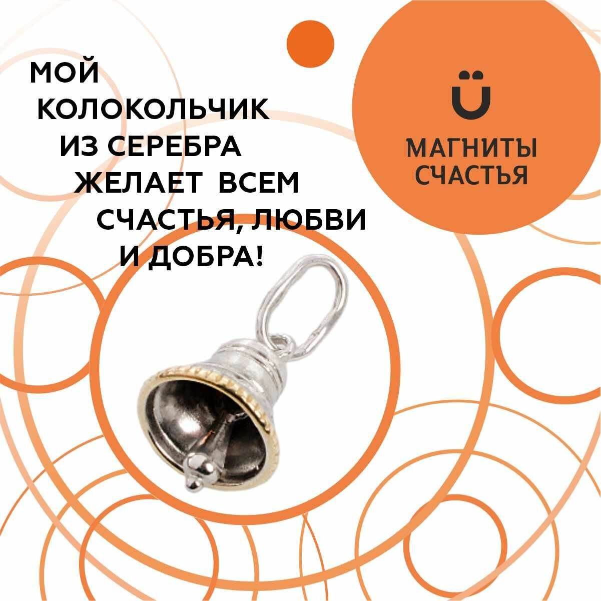 Магниты Счастья Оберег от сглаза и порчи "Малиновый звон" из серебра 925 пробы с золочением, брелок на ключи информация: