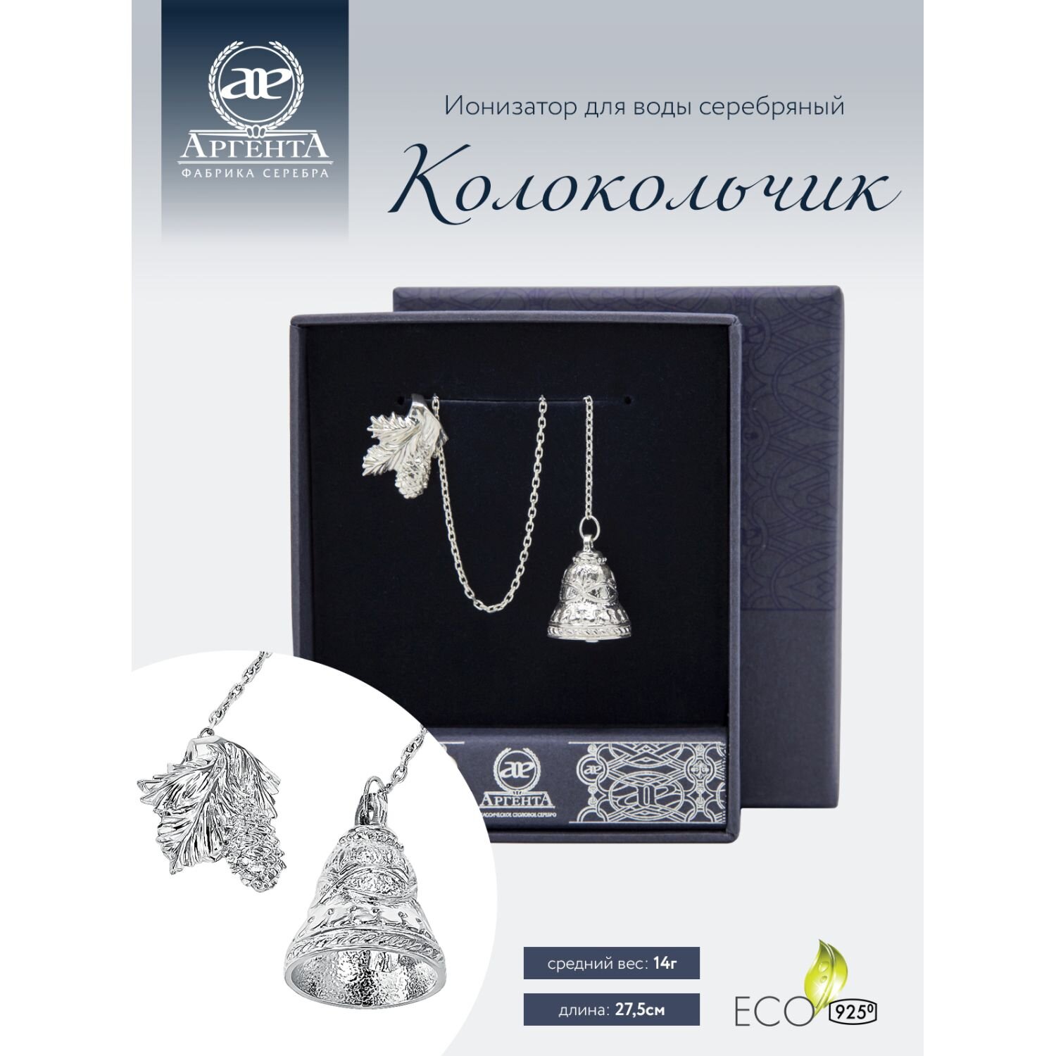 Серебряный ионизатор воды Аргента "Колокольчик", 925 проба информация: