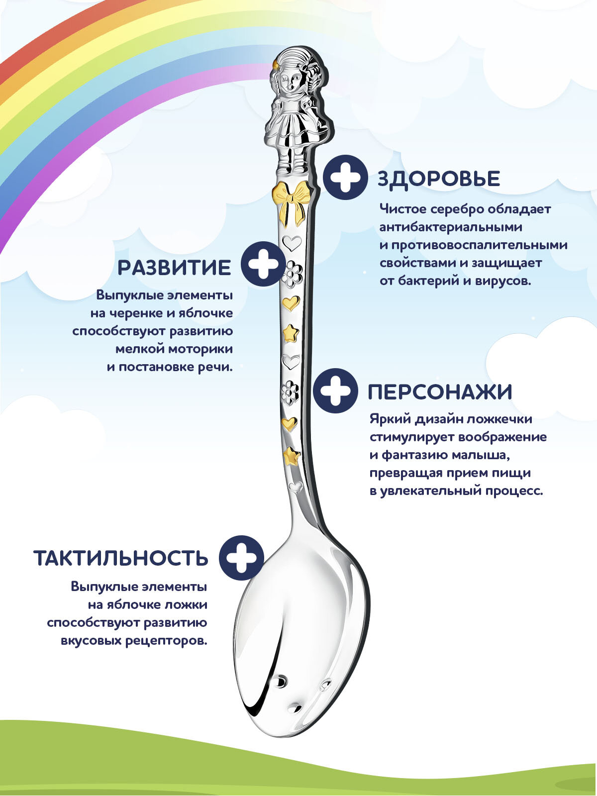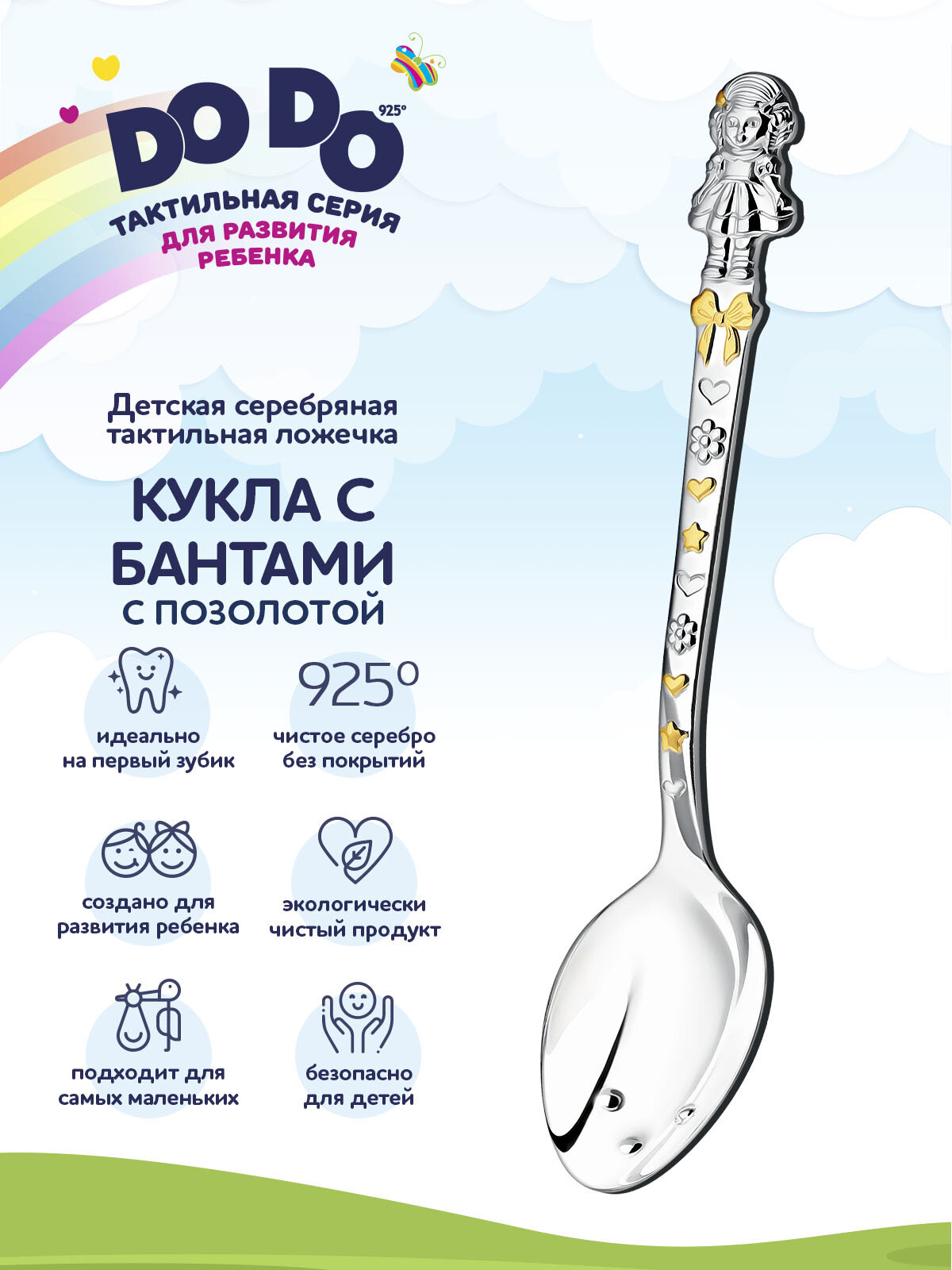 Отзывы на Ложка детская серебряная для кормления "Кукла с бантами" с позолотой в футляре