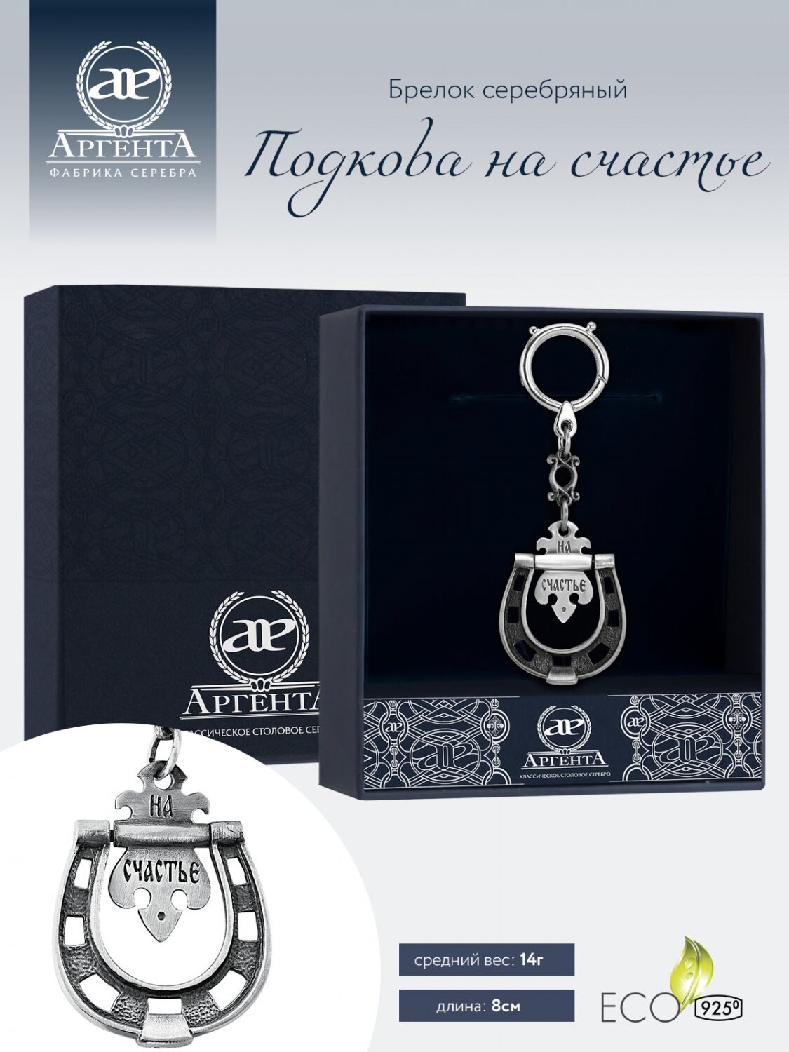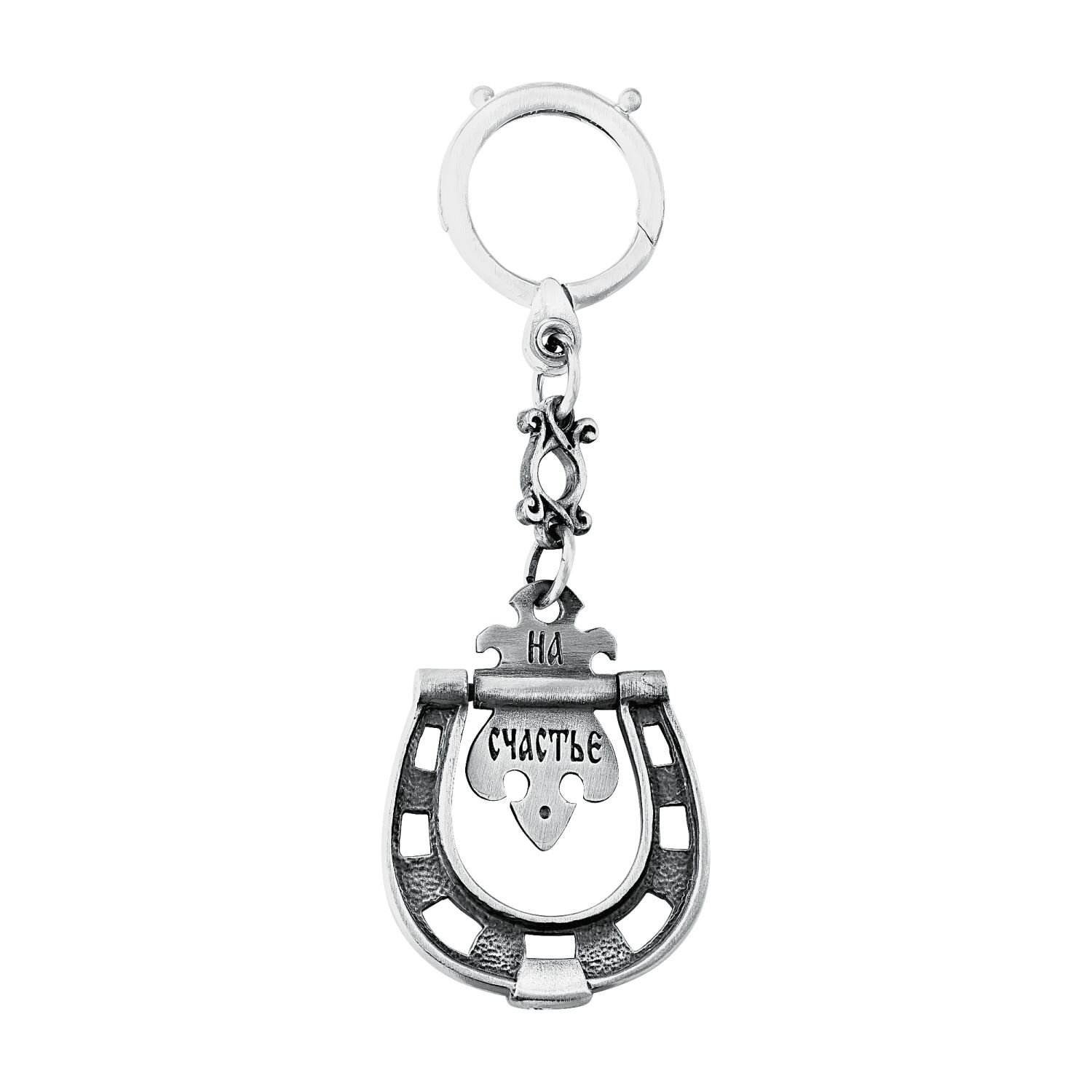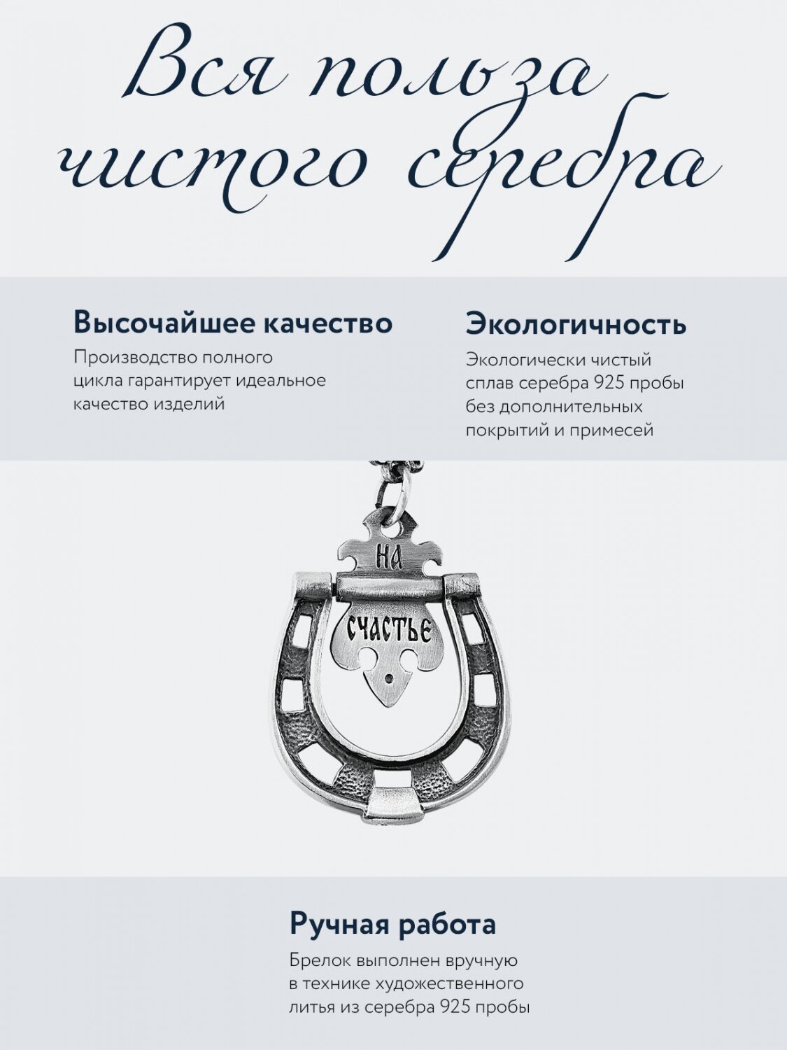 Брелок для ключей серебряный "Подкова на счастье" с чернением в футляре информация:
