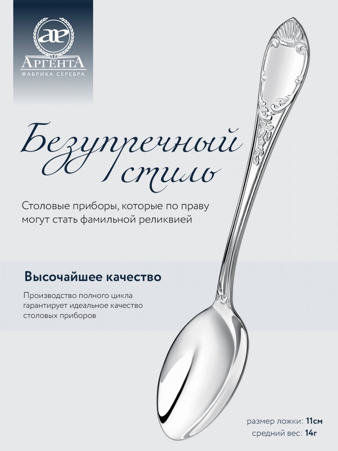 Серебряная чайная ложка с логотипом "Е" с позолотой от бренда "Аргента"