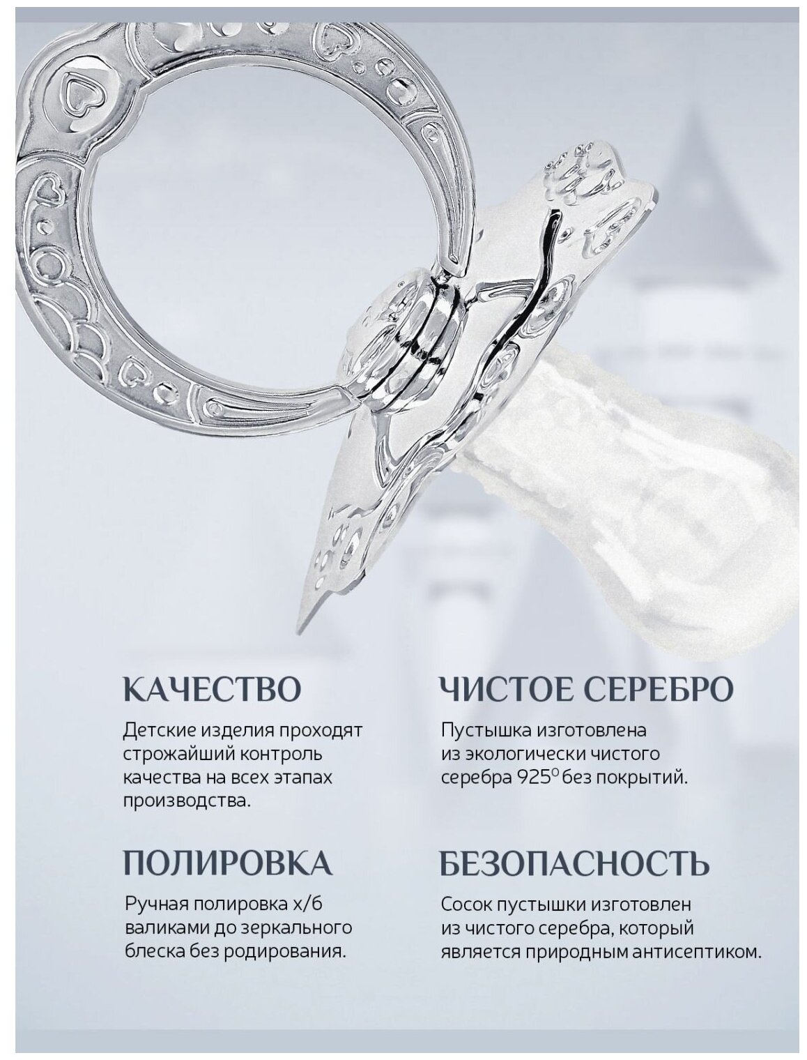 Пустышка детская серебряная в футляре 1093СВ05801/кд информация: