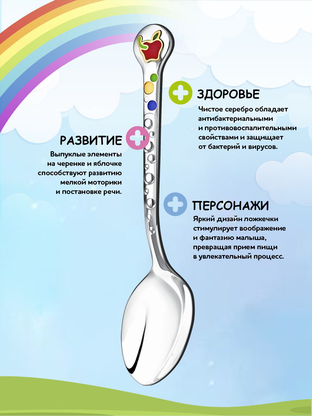 Отзывы на Ложка детская серебряная для кормления "Яблочко" с позолотой и с эмалью в футляре