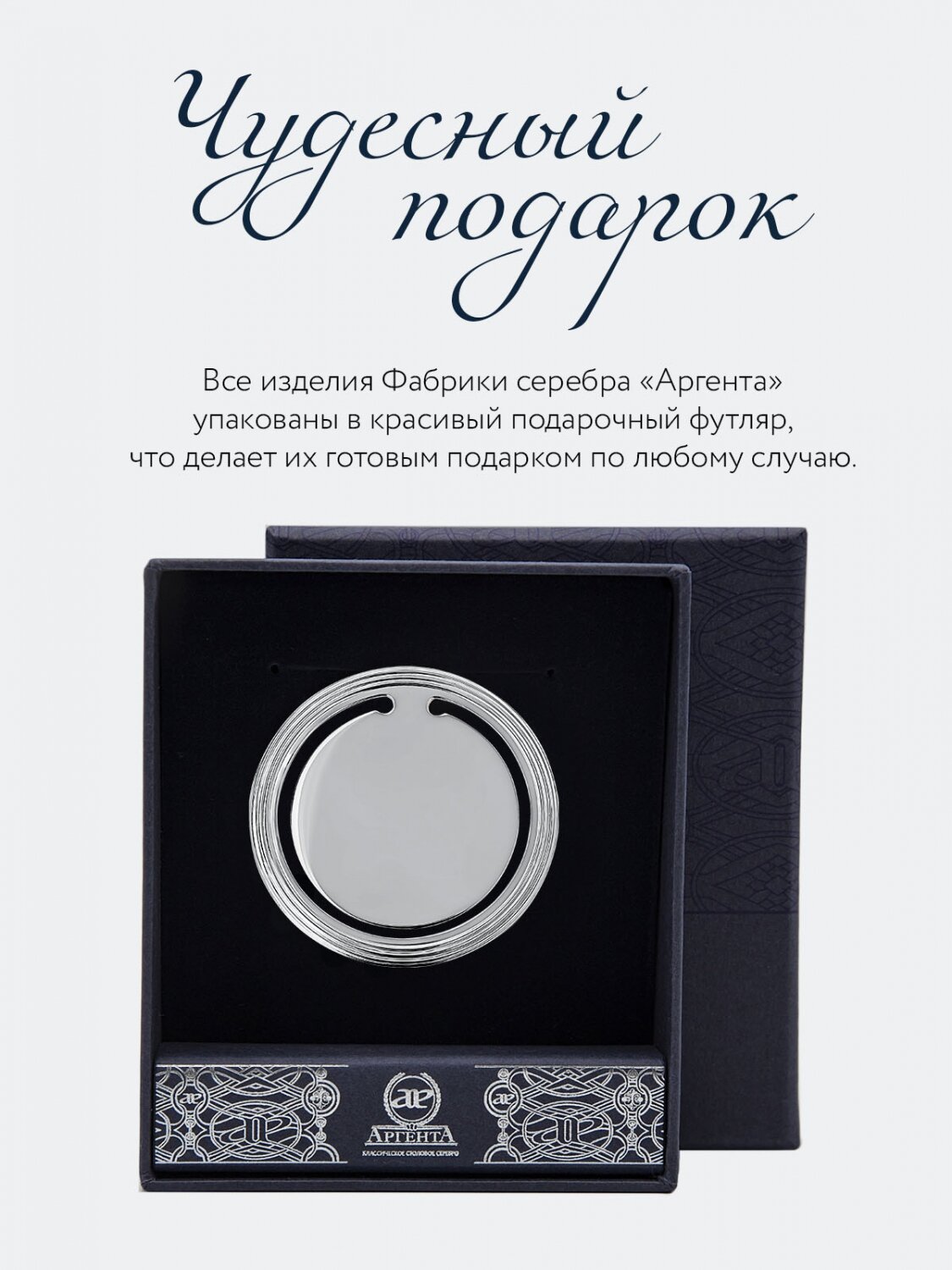 Серебряная закладка для книг "Гладкая под гравировку" в футляре информация: