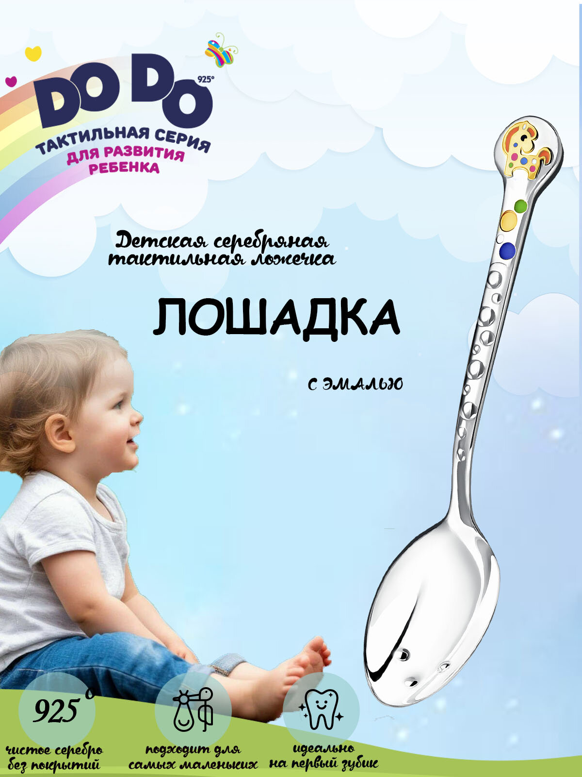 Отзывы на Ложка детская серебряная для кормления "Лошадка" с позолотой и эмалью в футляре