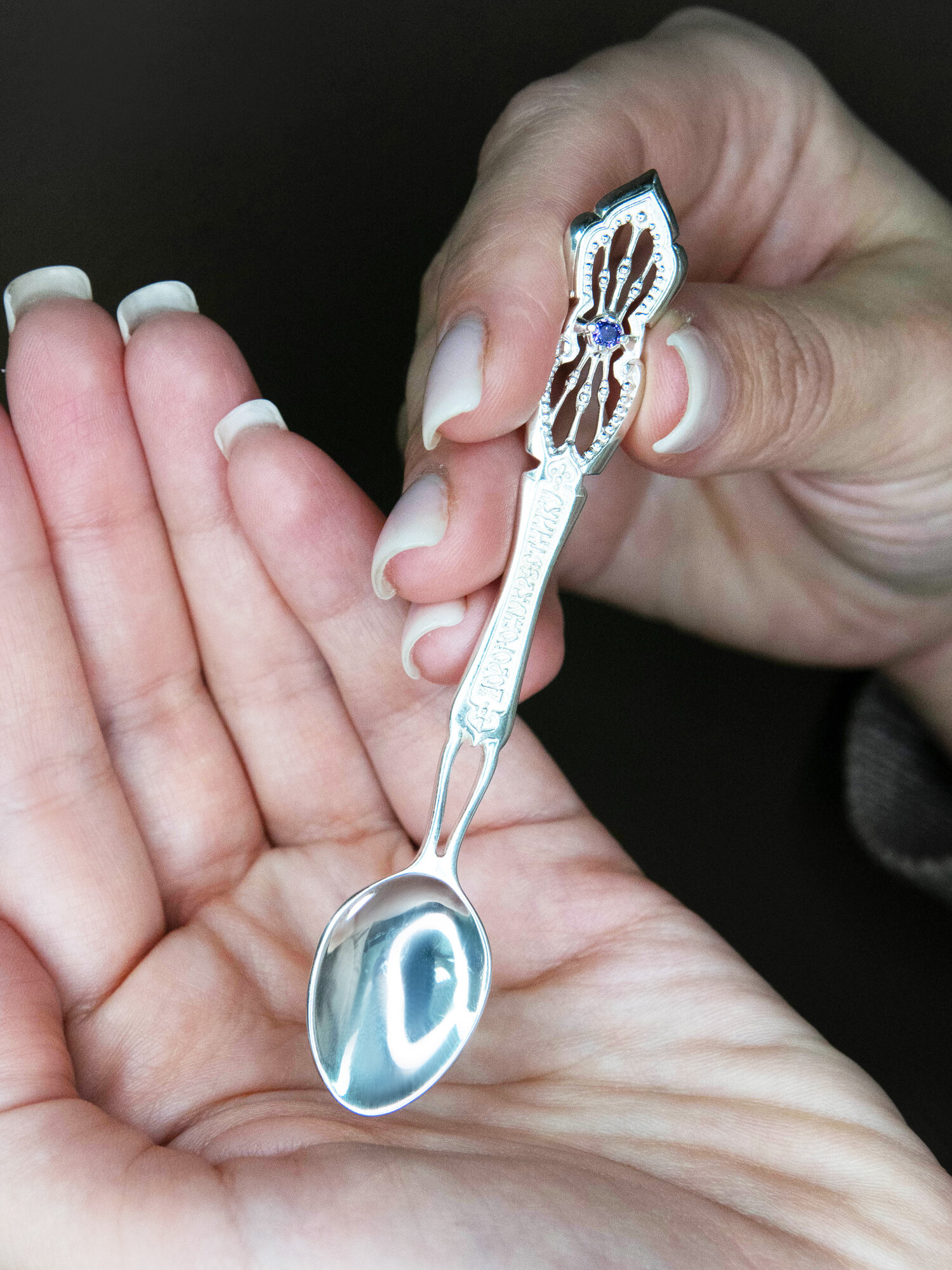 Серебряная чайная ложка с логотипом "Е" с позолотой от бренда "Аргента"