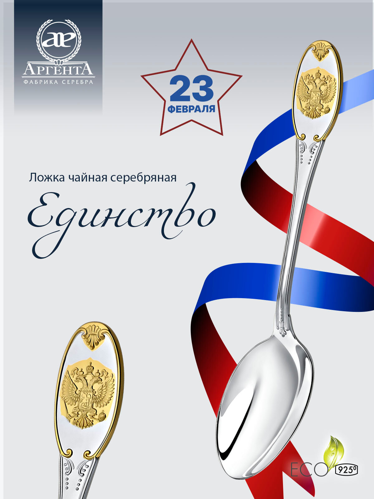 Чайная ложка АргентА "Единство", 925 проба, позолота, в футляре информация: