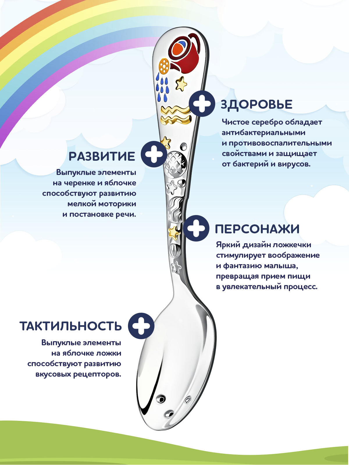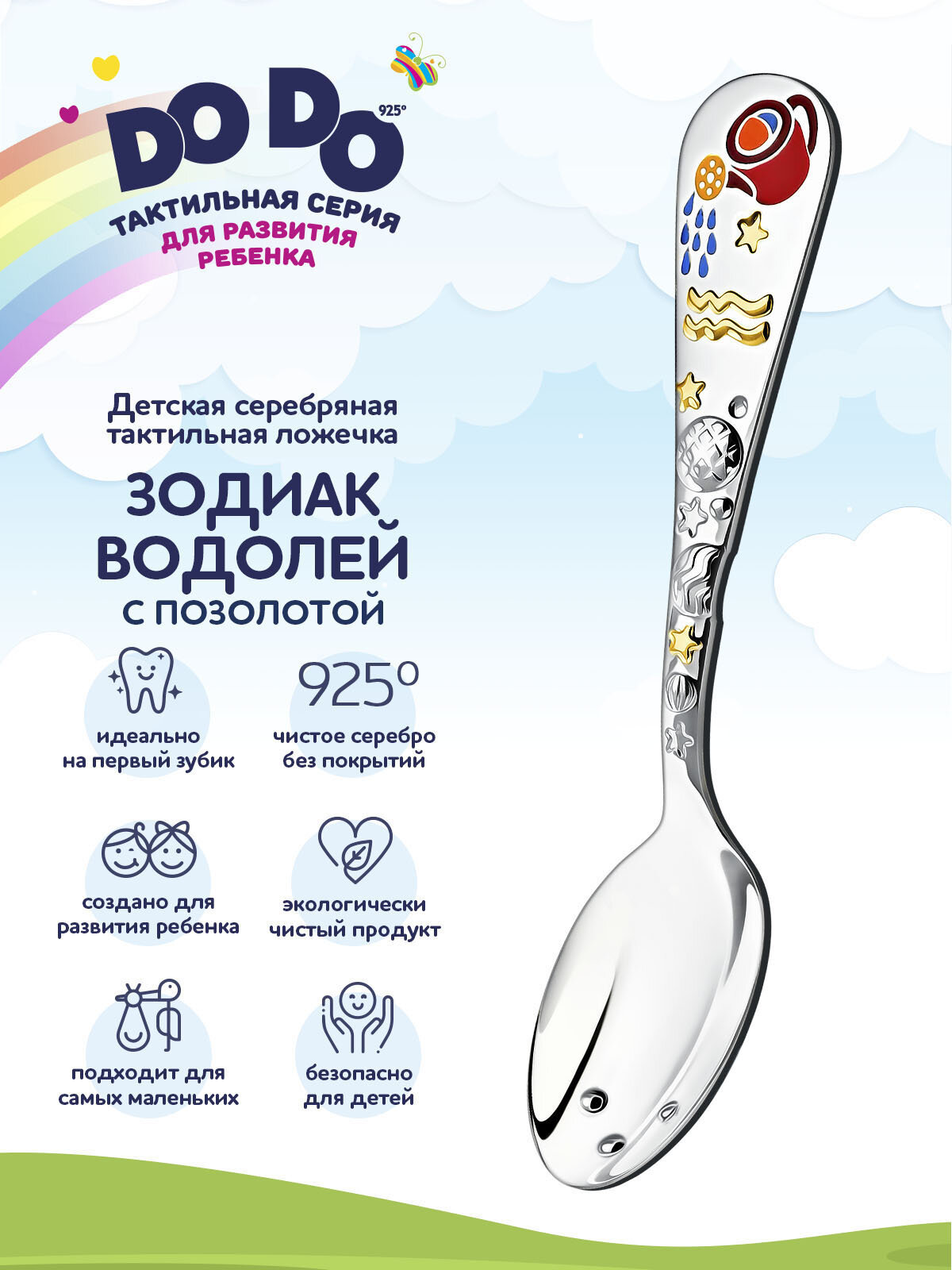 Отзывы на Ложка детская серебряная для кормления "Зодиак-Водолей" с позолотой с эмалью в футляре