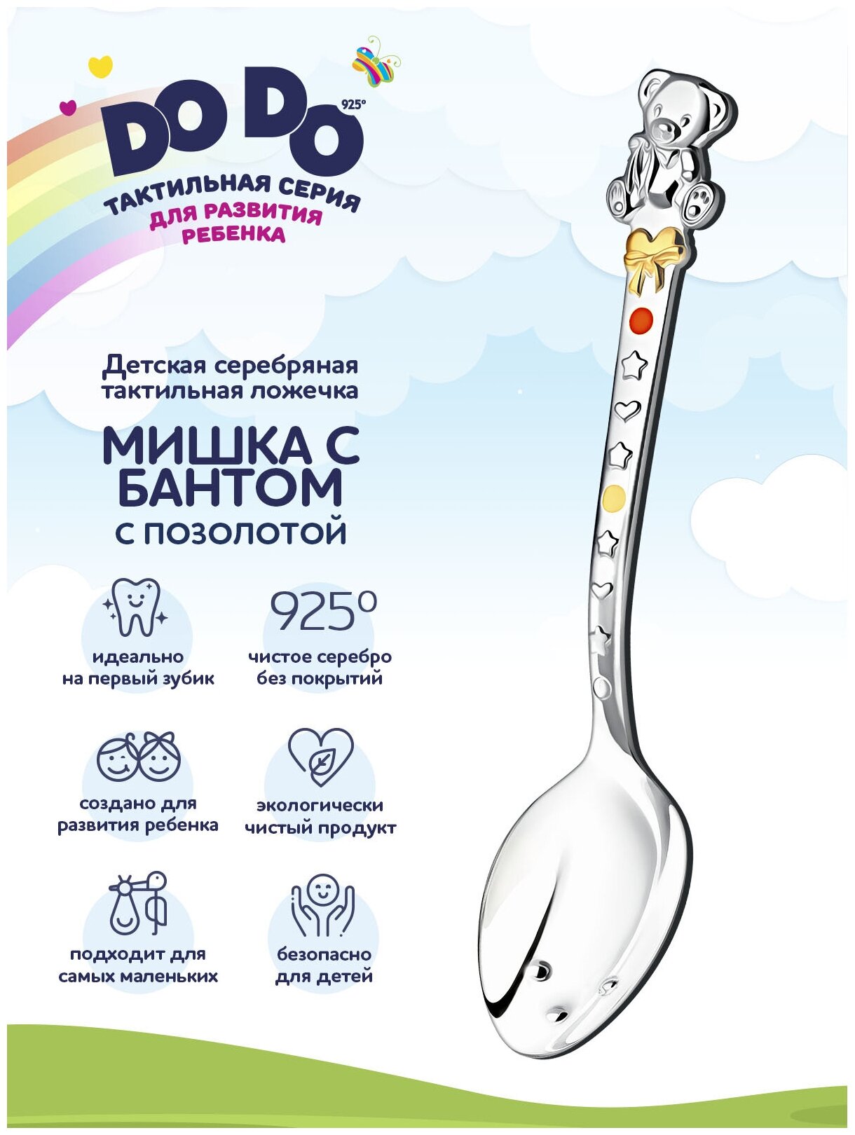 Отзывы на Серебряная ложка детская для кормления "Мишка с бантом" с позолотой с эмалью в футляре