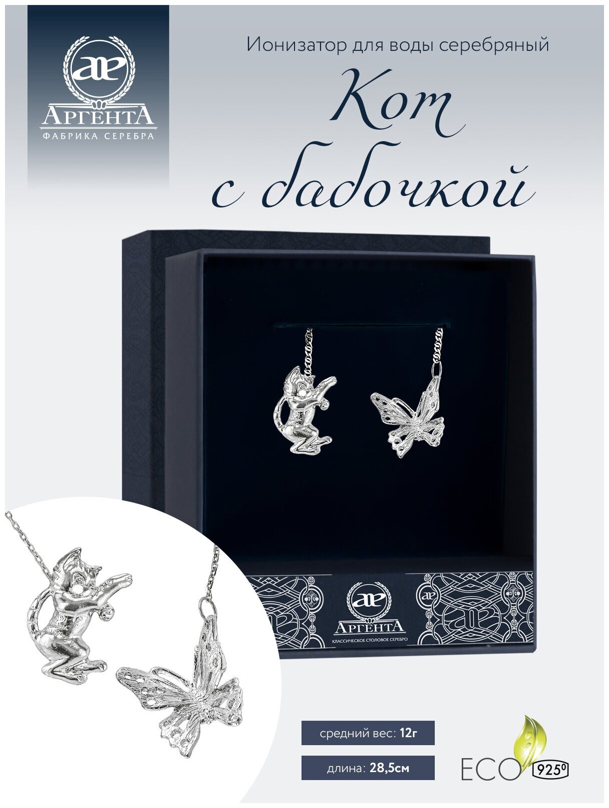 Ионизатор воды Аргента "Кот с бабочкой", 925 проба, в футляре информация: