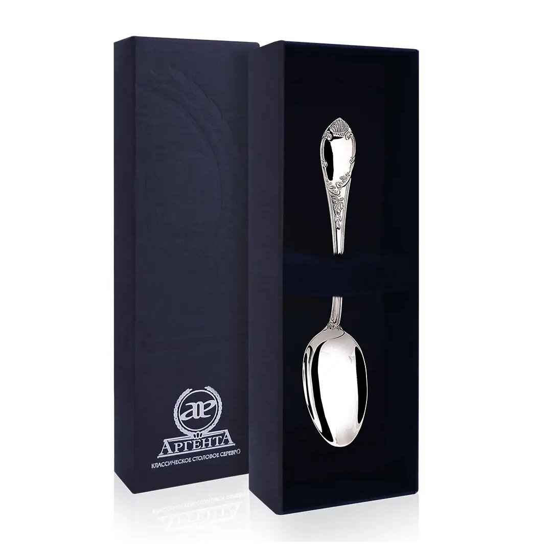Серебряная чайная ложка с логотипом "Е" с позолотой от бренда "Аргента"