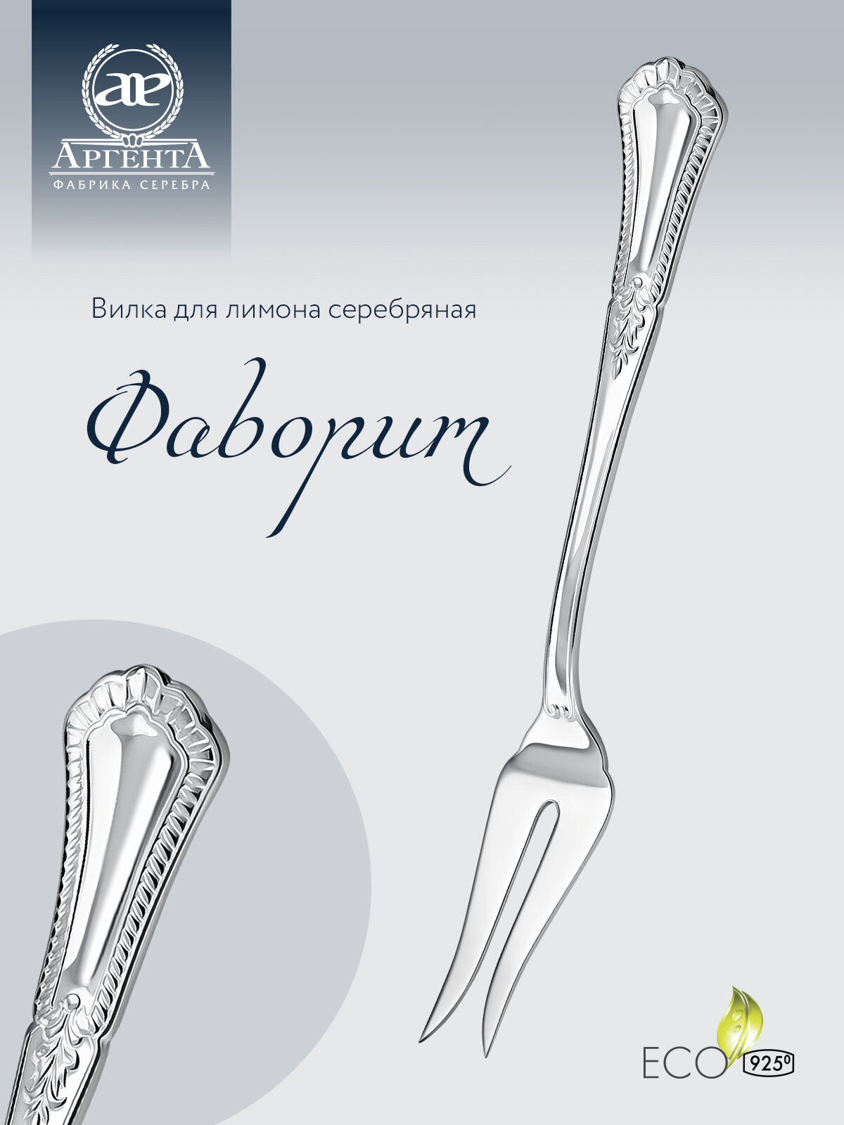 Серебряная вилка для лимона "Фаворит" в футляре информация:
