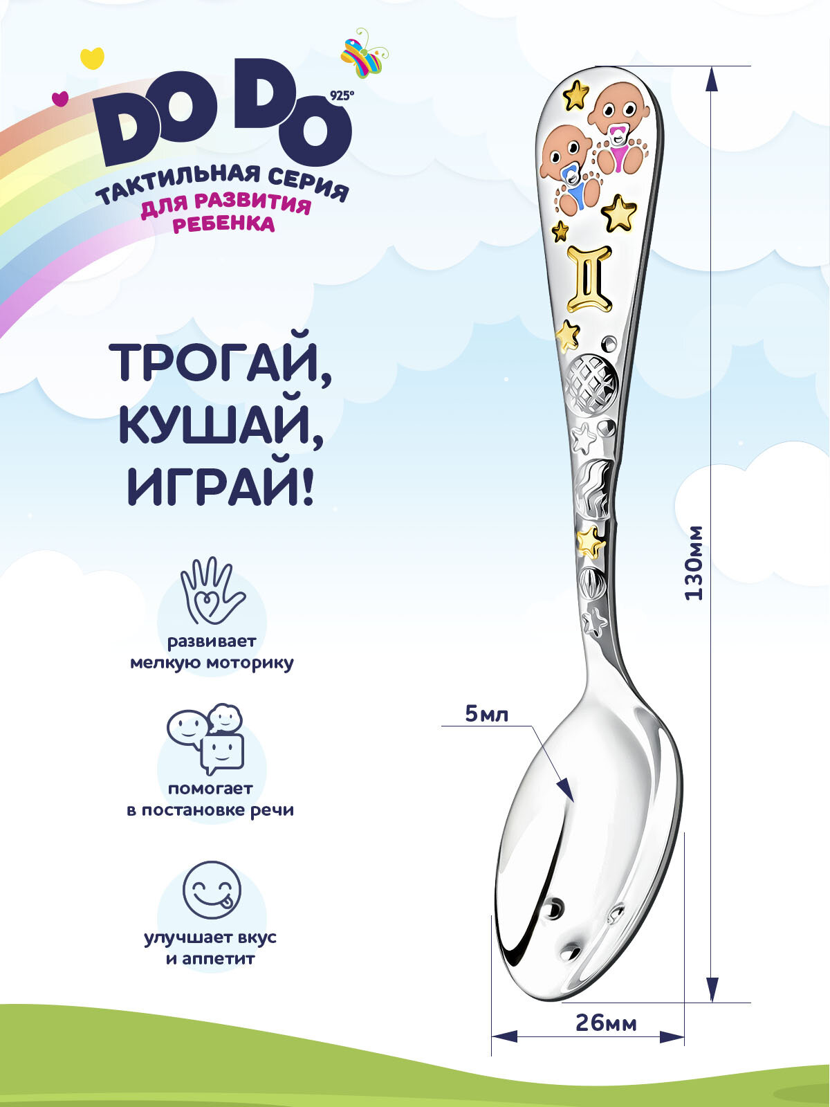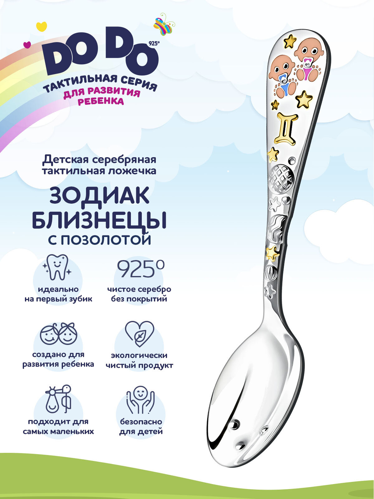Отзывы на Ложка детская серебряная для кормления "Зодиак - Близнецы" с позолотой с эмалью в футляре