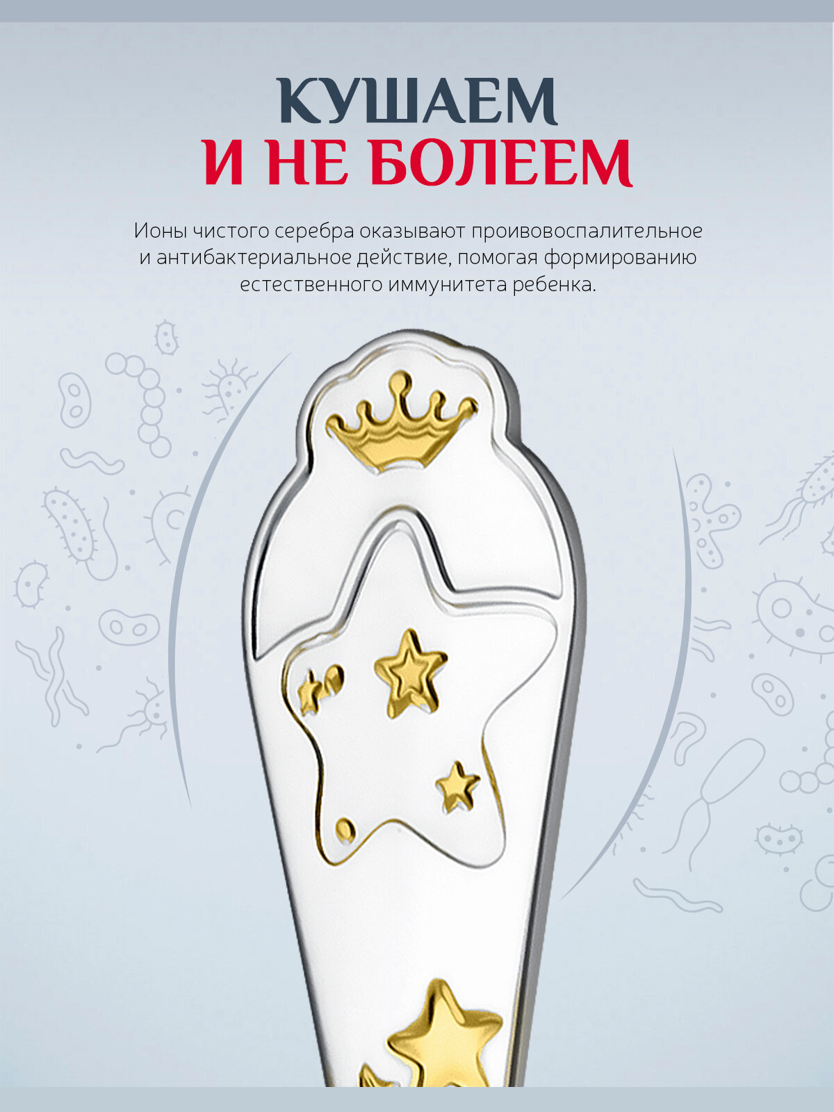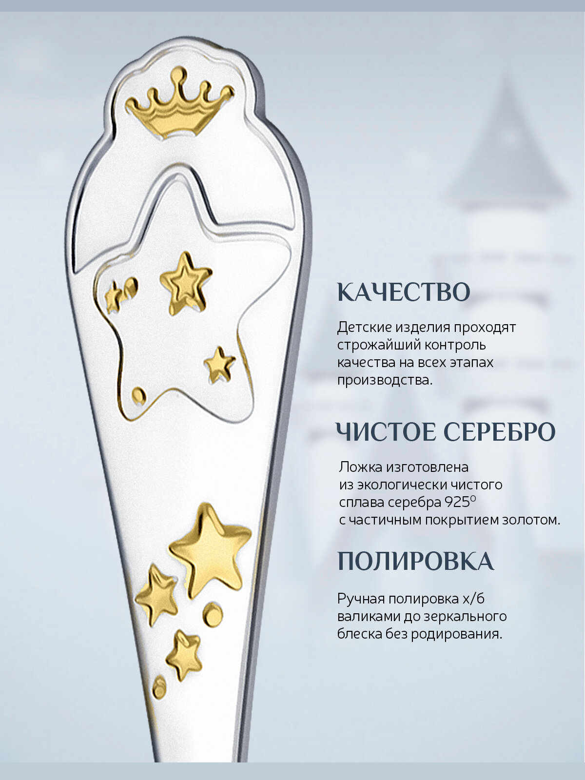 Ложка детская серебряная для кормления "Звезда" с позолотой в футляре информация: