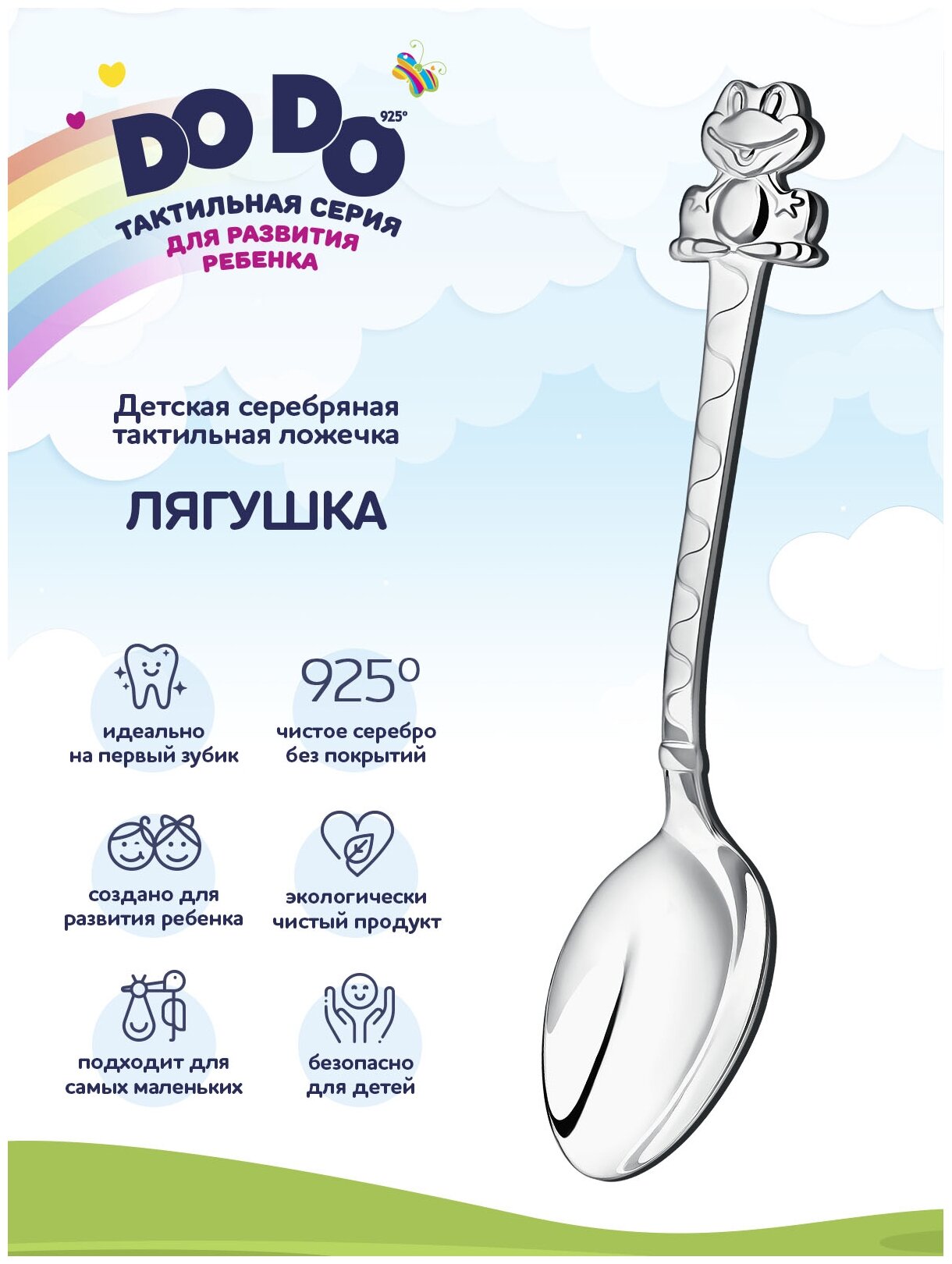 Серебряная детская ложка АргентА Лягушка DoDo с футляром информация: