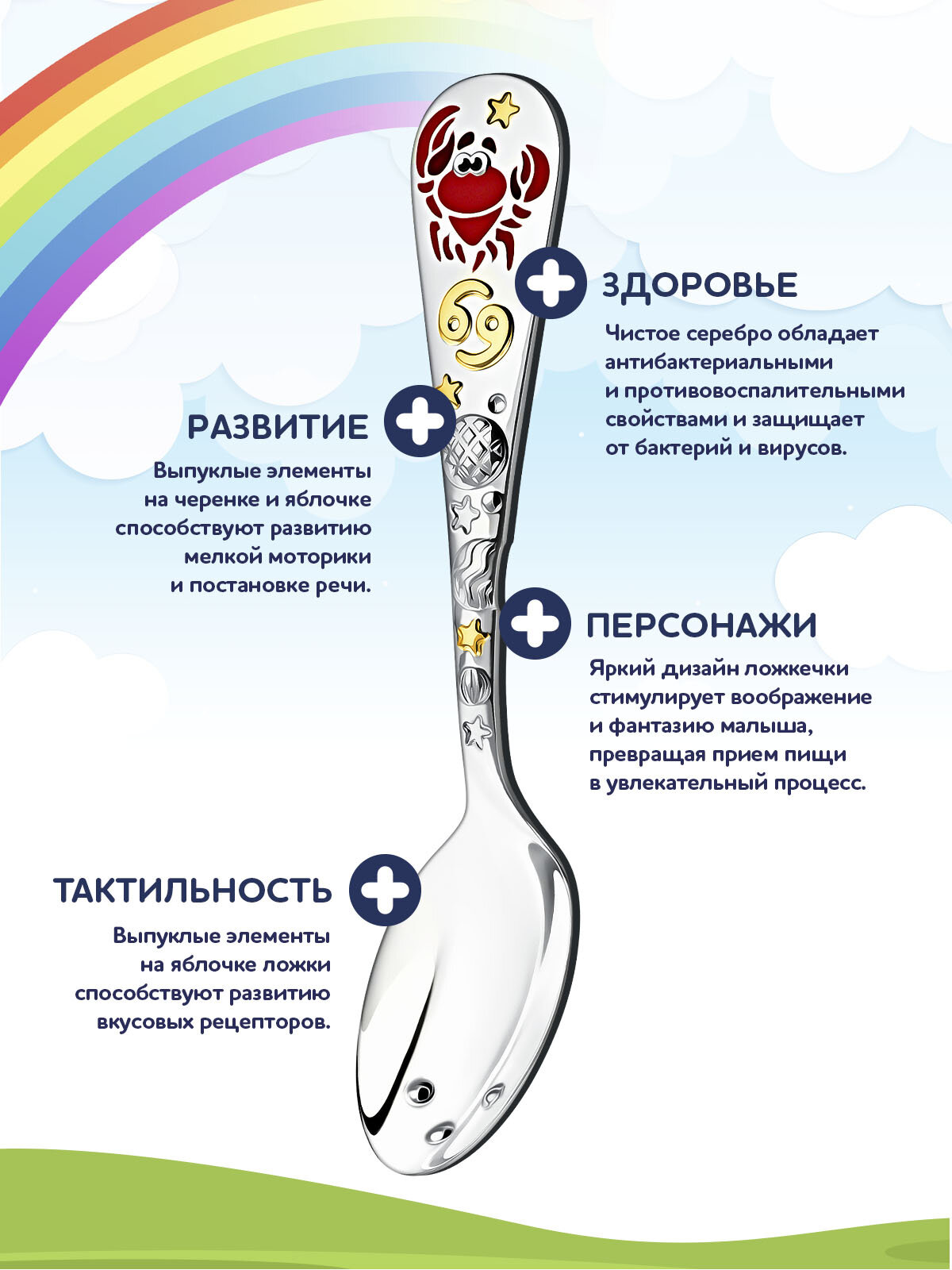 Отзывы на Ложка детская серебряная для кормления "Зодиак-Рак" с позолотой с эмалью в футляре