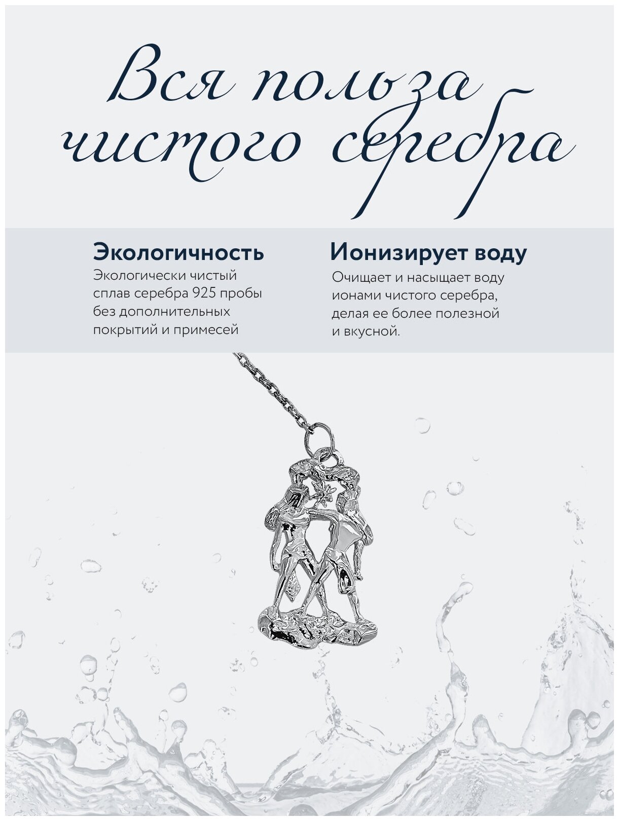 Серебряный ионизатор воды " Зодиак Близнецы " в футляре информация: