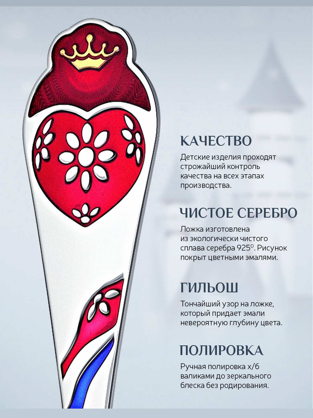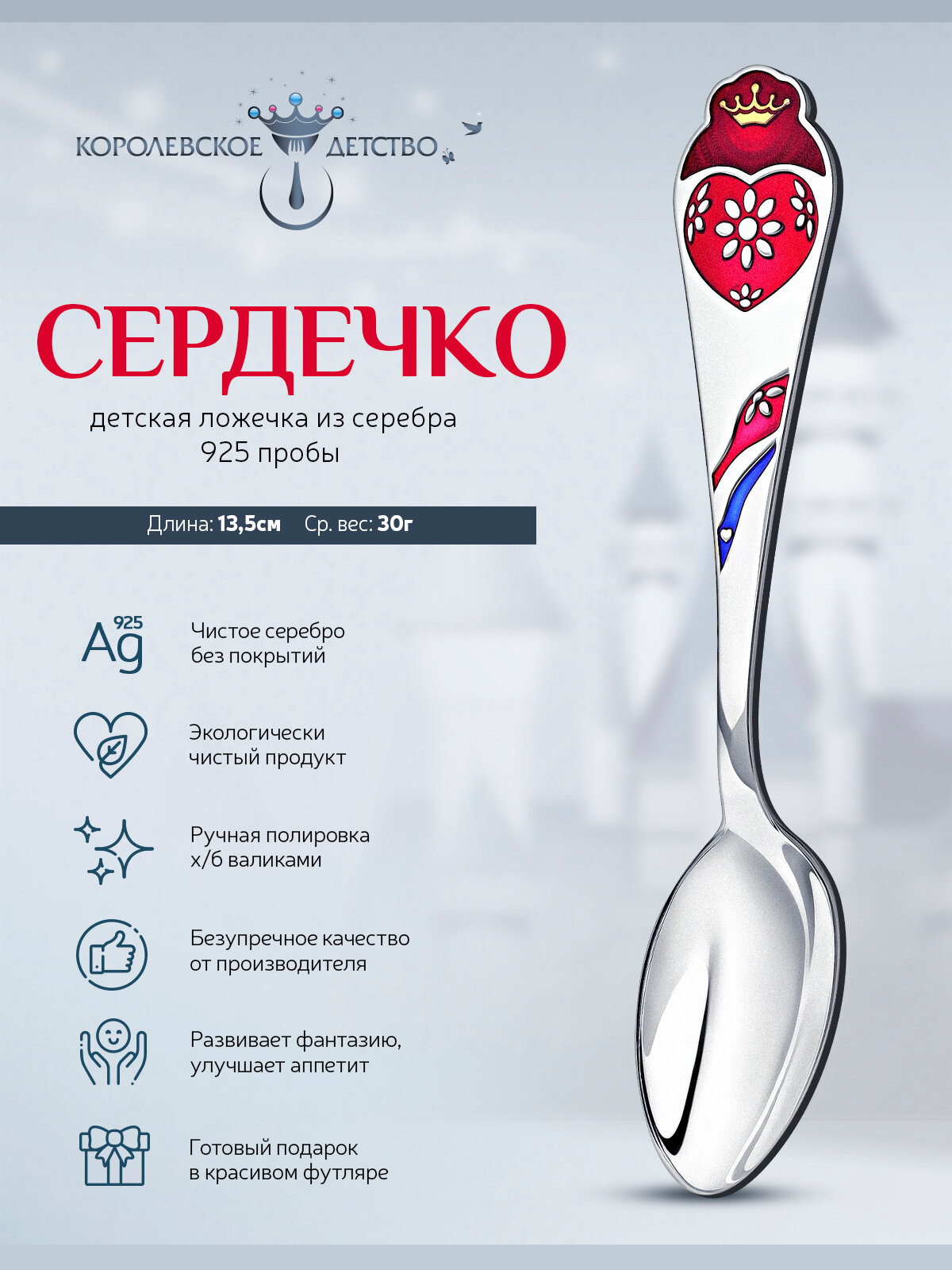 Отзывы на Ложка детская серебряная для кормления "Сердечко" с позолотой с эмалью в футляре