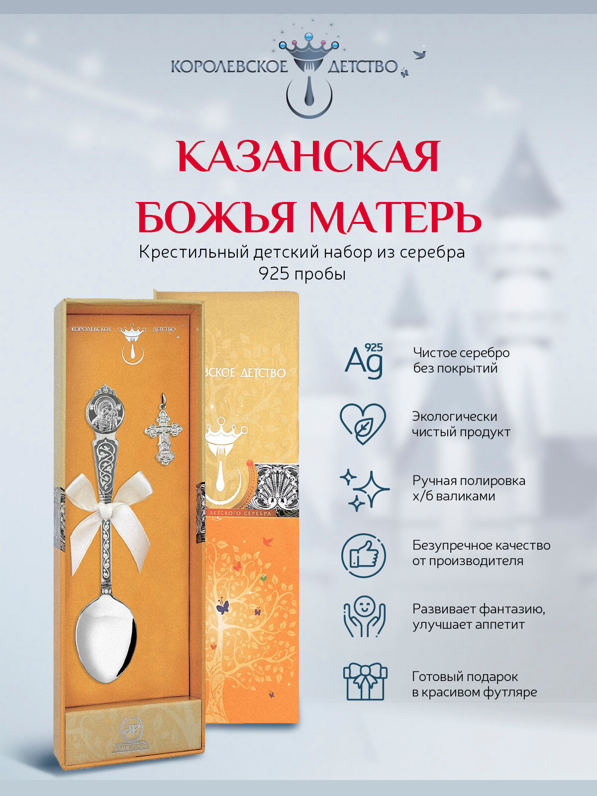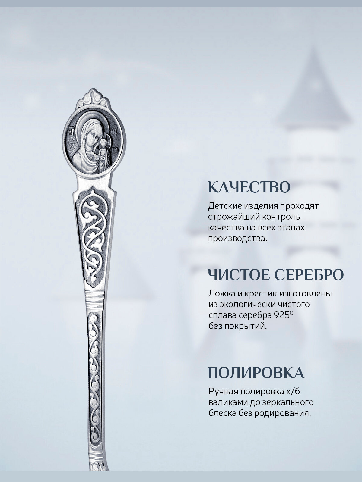 Отзывы на Набор детский серебряный "Крестильный" с ложкой "Казанская Божья Матерь" с чернением