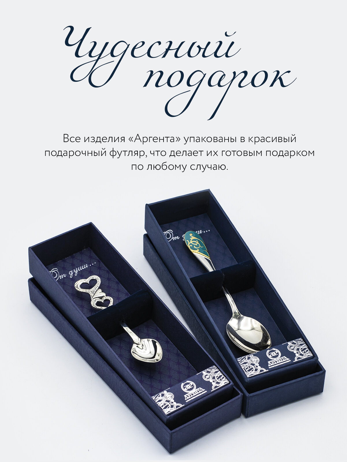 Серебряная чайная ложка с логотипом "Е" с позолотой от бренда "Аргента"