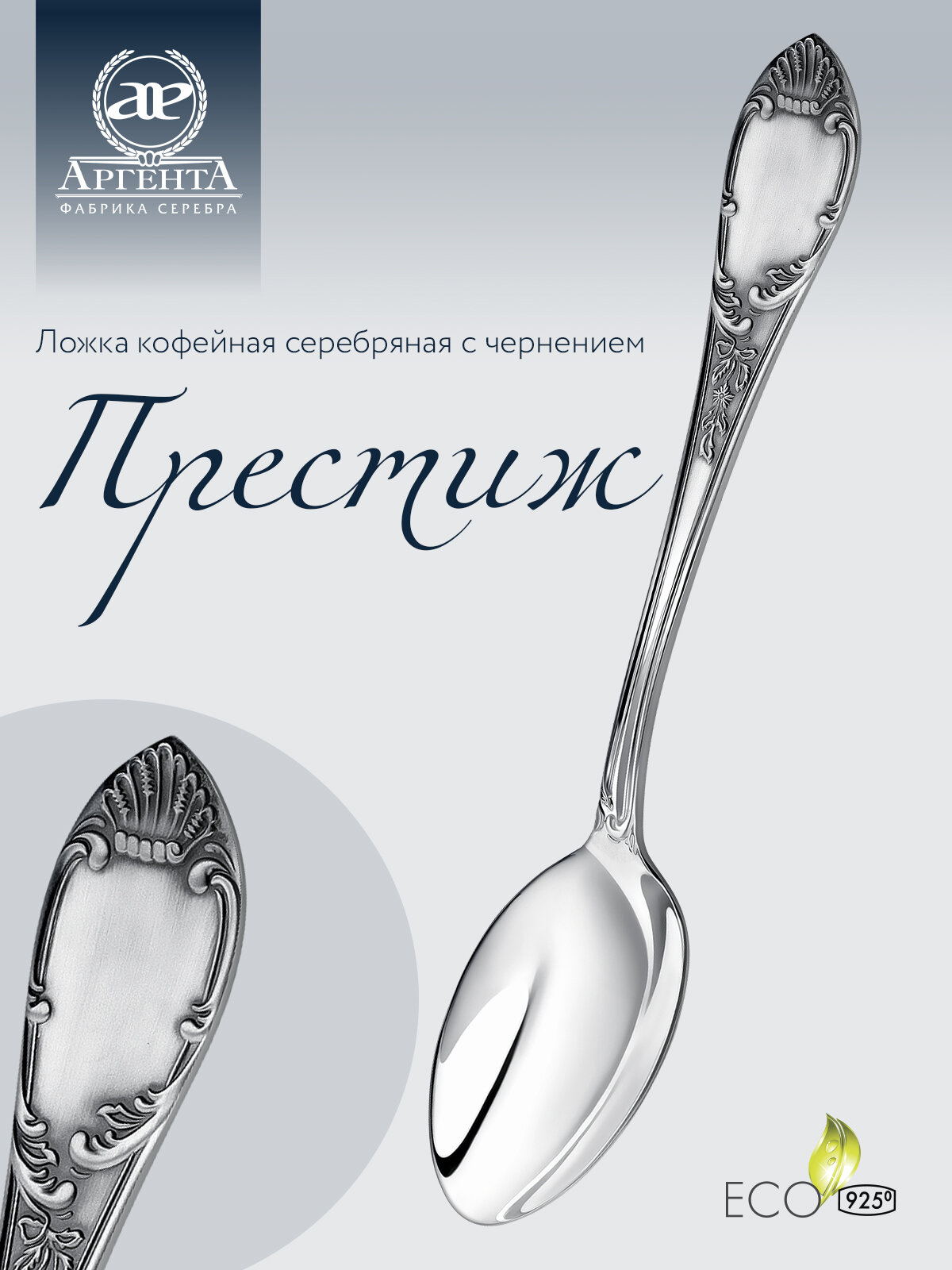 10 цен на Ложка серебряная кофейная "Престиж" с чернением в футляре