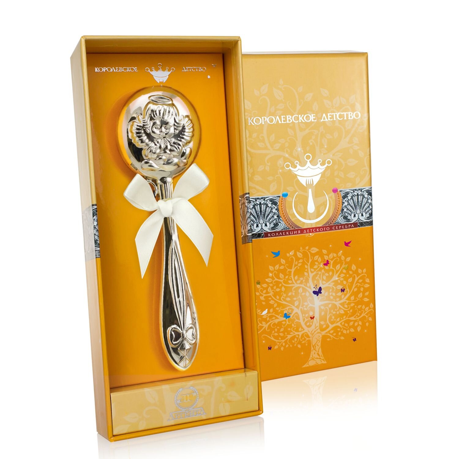 Серебряная чайная ложка с логотипом "Е" с позолотой от бренда "Аргента"