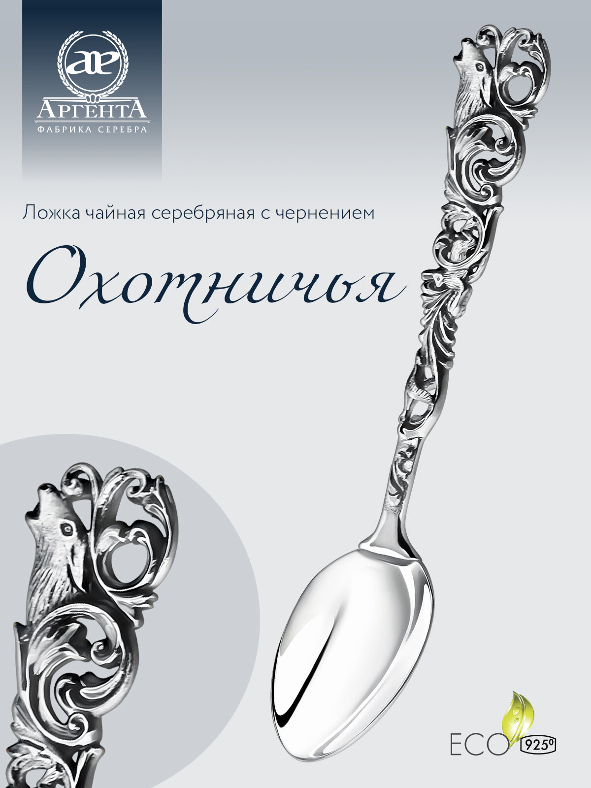 Отзывы на Ложка чайная серебряная Аргента "Охотничья" с чернением в футляре