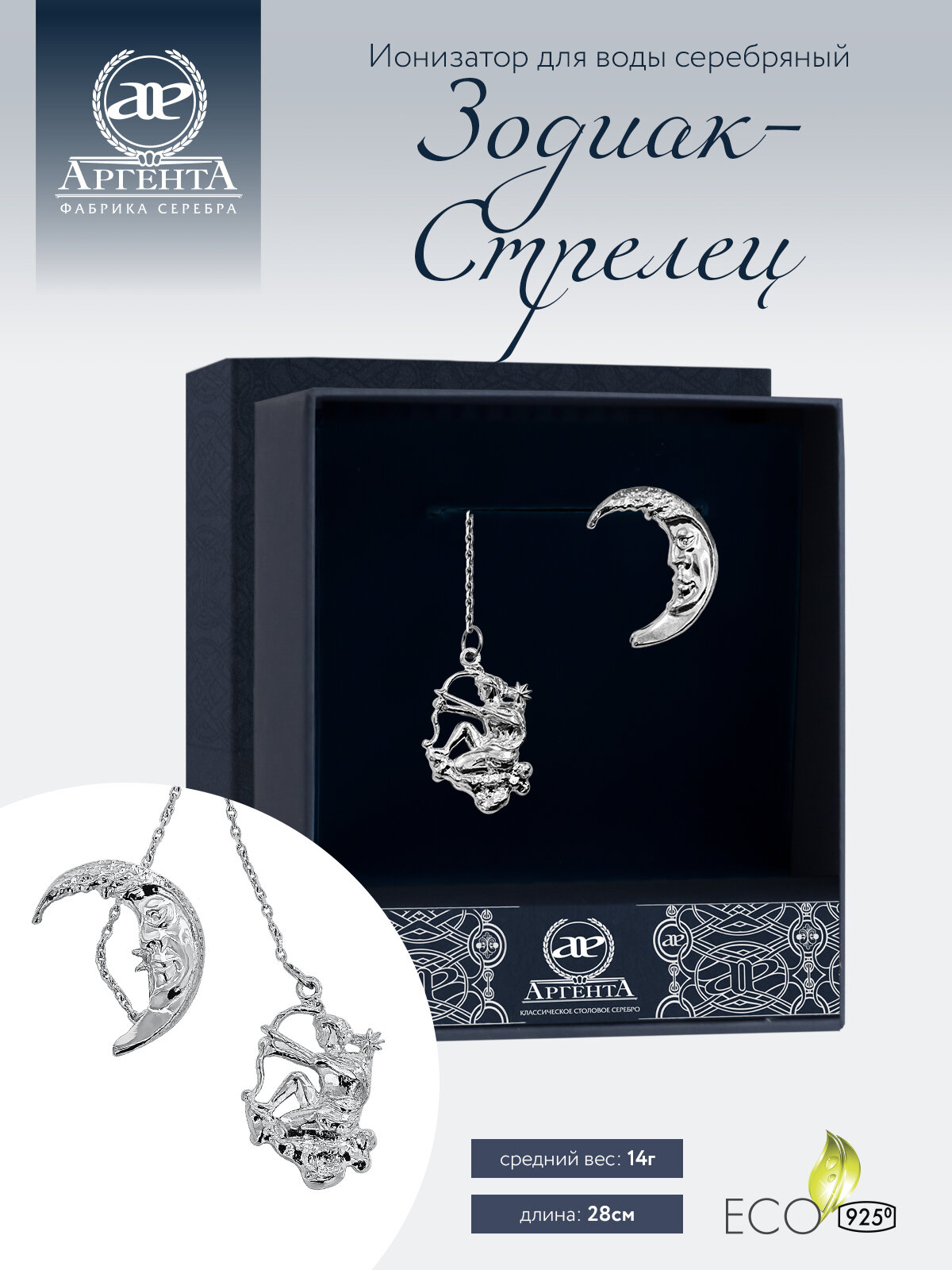 10 цен на Серебряный ионизатор воды АргентА "Зодиак Стрелец", на цепочке, в футляре, 925 проба