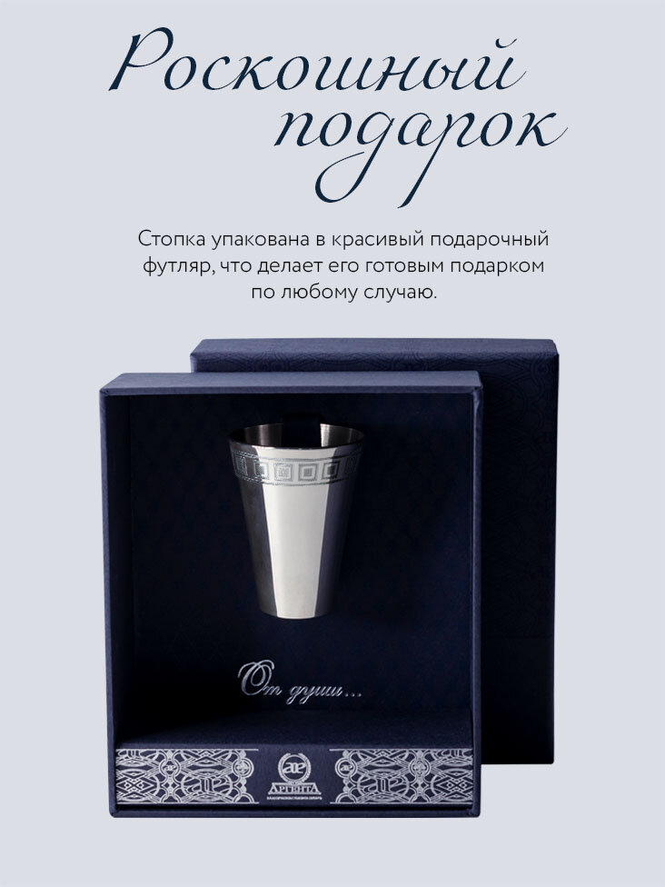 Отзывы на Стопка серебряная гладкая с рисунком "Квадрат" в футляре, 35 мл