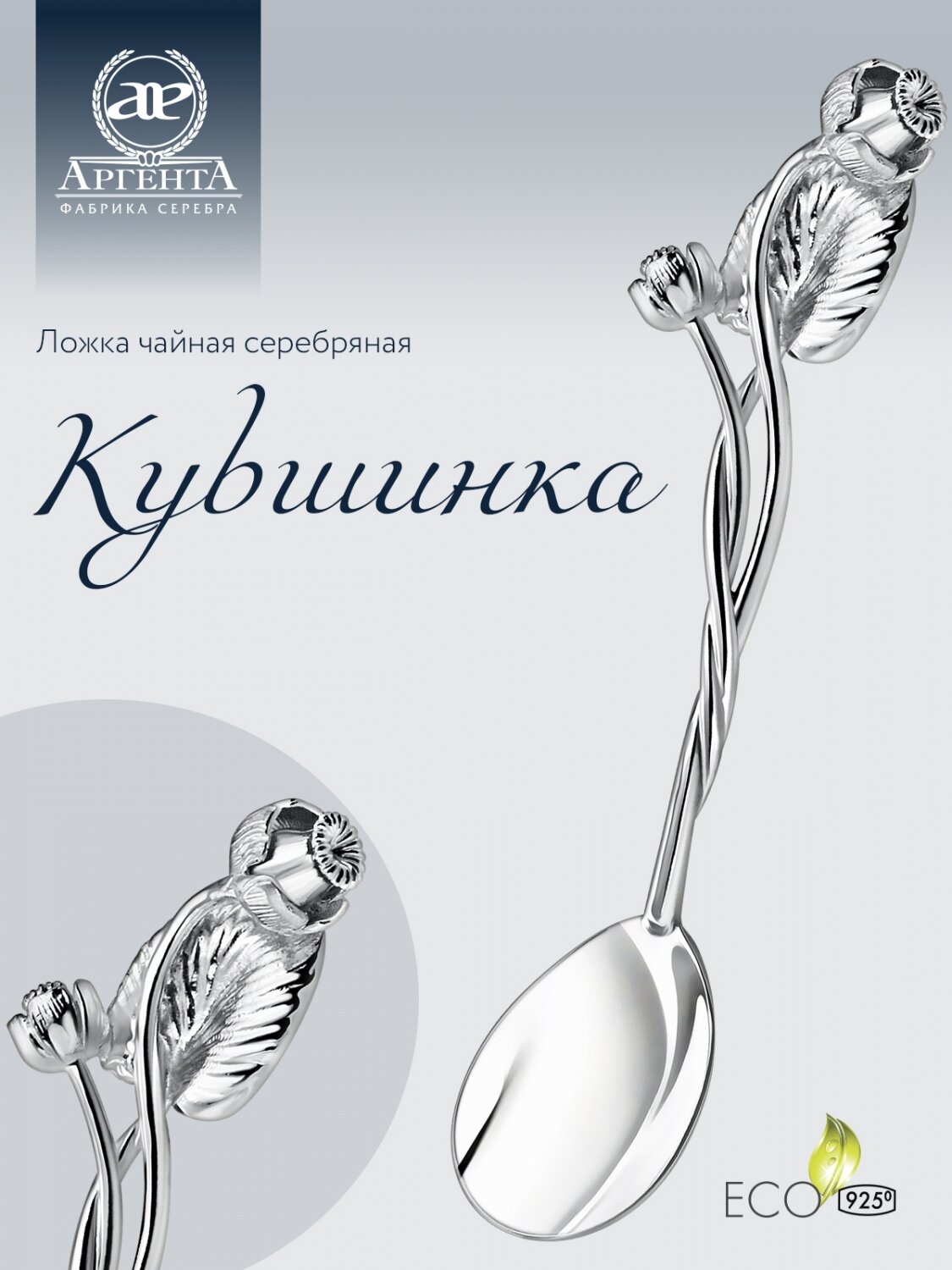 Серебряная чайная ложка с логотипом "Е" с позолотой от бренда "Аргента"
