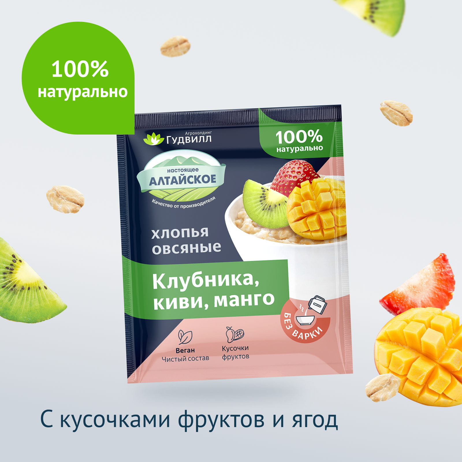 Каша овсяная быстрого приготовления с клубникой, киви, манго, Гудвилл 17 пакетиков по 40 г информация: