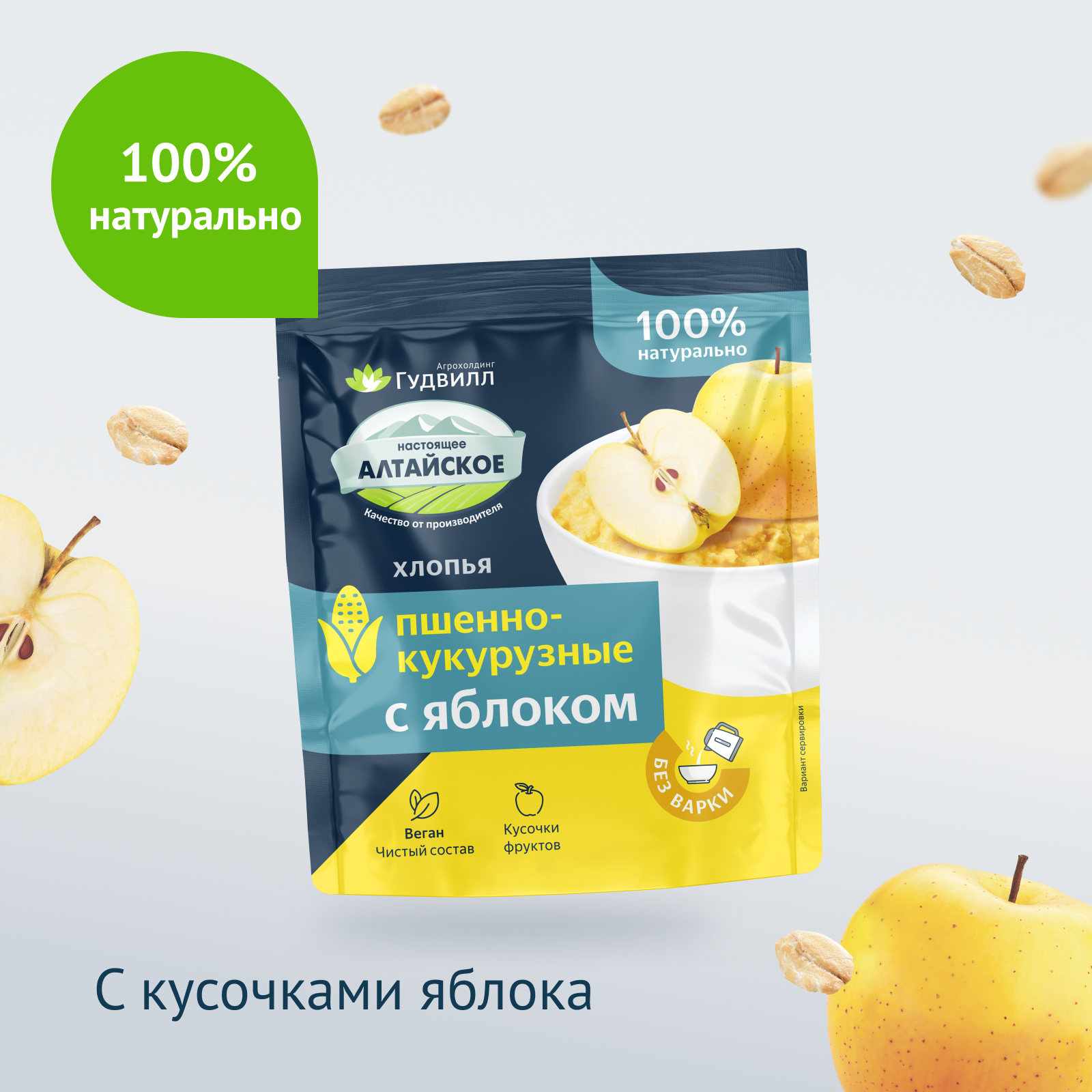 Каша пшенно-кукурузная с яблоком, Гудвилл, быстрого приготовления 17 пакетиков по 40 г информация:
